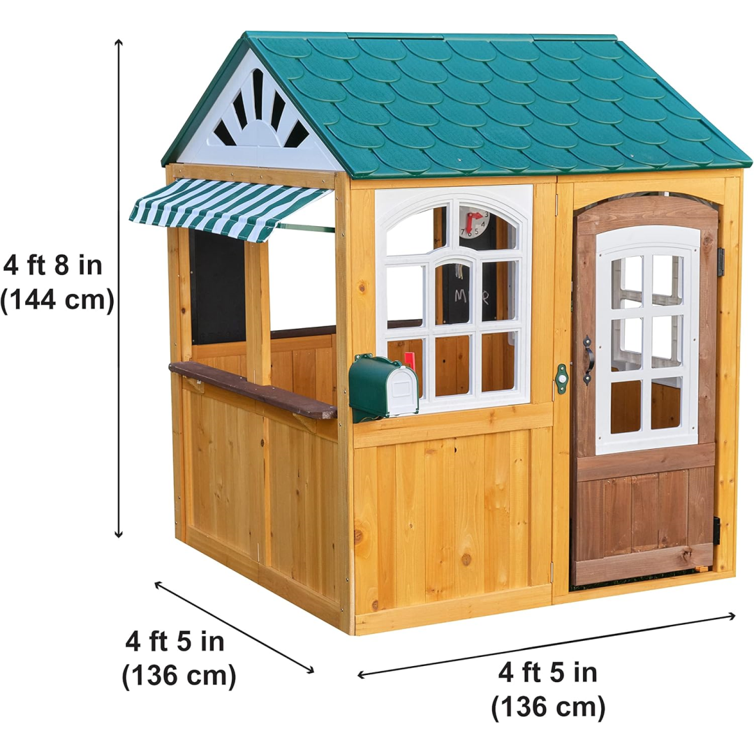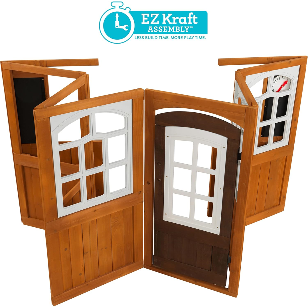 The KidKraft Garden View Playhouse is a delightful outdoor retreat designed to ignite kids' imaginations and inspire hours of imaginative play. It comes loaded with engaging features like a ringing doorbell, a phone with clicking buttons, adjustable clock hands, and a working mailbox - perfect for endless pretend play adventures.