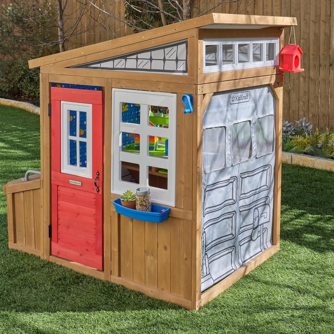 Let your little DIY enthusiast's imagination run wild with the KidKraft Hobby Workshop Wooden Playhouse - a magical space where creativity meets hands-on learning. Perfect for busy families looking to maximise play value, this workshop-style playhouse brings the excitement of a real tool shed to your garden, complete with roll-up garage door and multiple windows for plenty of natural light.