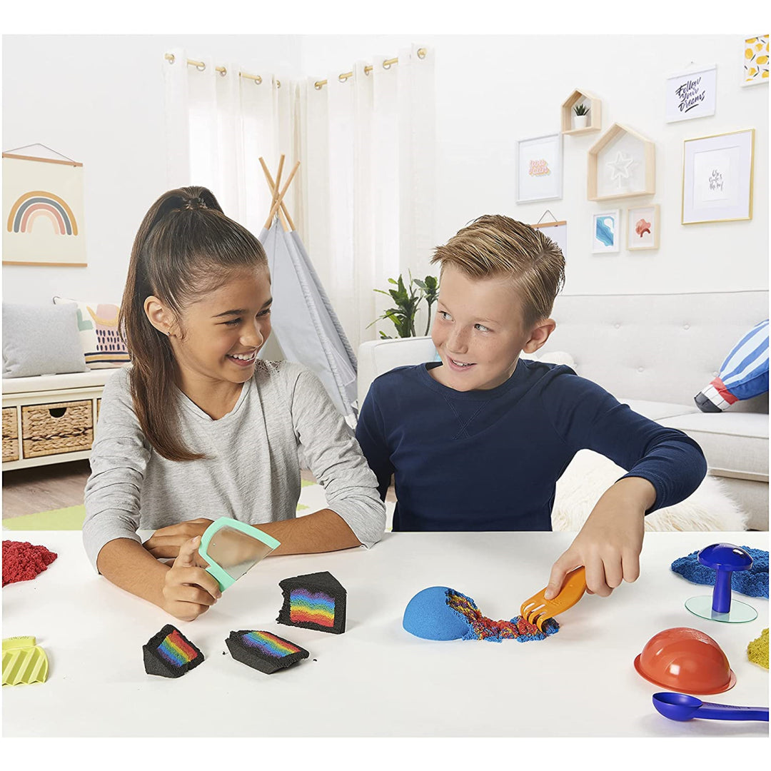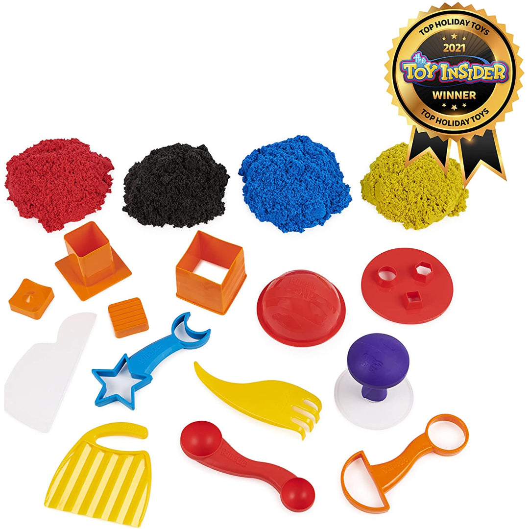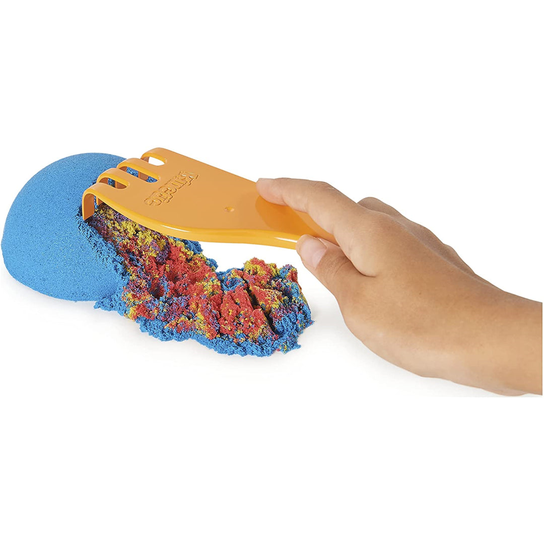 With the Kinetic Sand Sandisfactory Set, you can mix, shape, slice, and squish Kinetic Sand like never before! Everything you need to produce captivating sand surprise reveals and strangely fulfilling films at home, similar to those you've seen online, is included in the Sandisfactory Set! There are many ways to create using two pounds of Kinetic Sand, over ten different tools, and moulds! To start the sand flowing, fluff it up before you play!