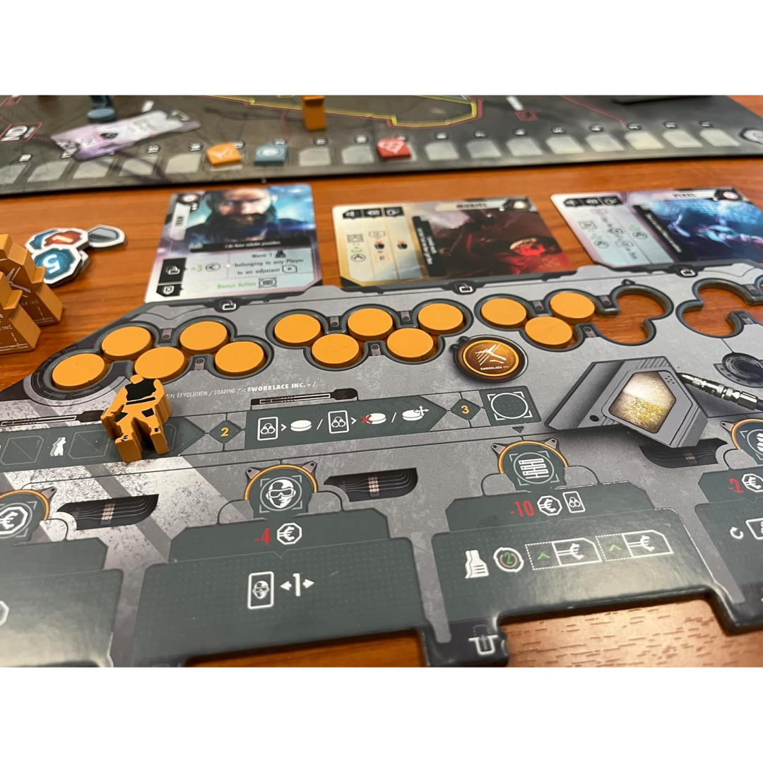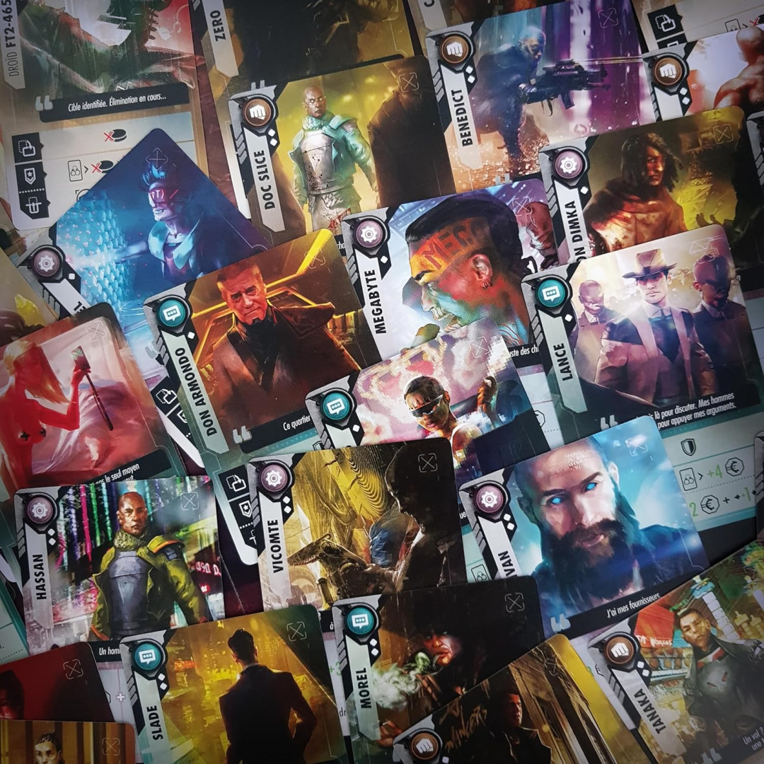 What really makes this stand out are the premium components that La Boite De Jeu has packed in. Layered player boards give that satisfying tactile feel, unique wooden pieces add character to your gameplay, and the striking cyberpunk illustrations create an immersive atmosphere that draws everyone into the futuristic world. It's the kind of quality you'd expect to pay much more for.