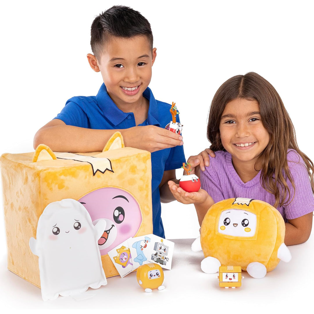 Starring Justin and Adam, along with their animated cast of Boxy, Foxy, and Rocky, is LankyBox, the most watched gaming pair on the planet. They produce hilarious, high-energy films that include games, challenges, and shorts. The highly anticipated Giant Foxy Mystery Box is now here for LankyBox devotees who can't get enough of the enormously popular YouTube channel! The set is the ultimate surprise unpacking experience since it is full with brand-new, amazing treasures. It has stickers, a whoopie cushion, mystery plush, squishy, spinner, and figurines. Children may pretend to be the beloved character Foxy when the plush cover detaches from the case and functions as a wearable mask! The inventive charm and strong energy of the LankyBox movies are captured in every piece of material. Contents might change.