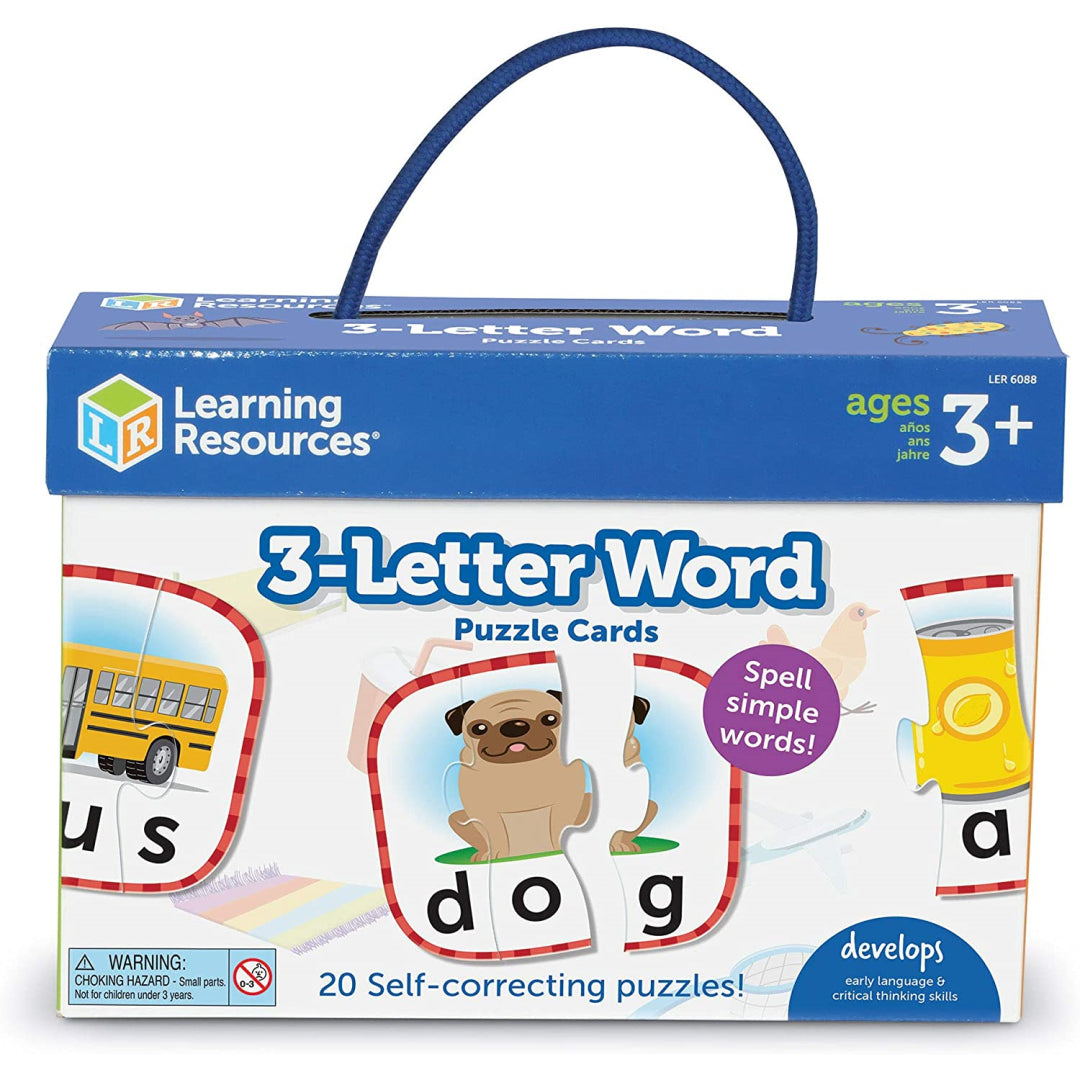Piece by piece, develop new preschool ready skills. The Learning Resources 3-Letter Word Puzzle Cards will help your children learn while having fun. Through challenging puzzle play, this collection of 20 vibrant three- and four-piece puzzles aids children in developing their early language and spelling abilities. Every puzzle has one straightforward three-letter vocabulary word and a matching full-colour graphic; your children will learn new spelling techniques as they play, from BAT and HEN to DOG and BUS. Each problem is self-correcting since it was made with young children in mind, making it simpler for children to figure out the one correct response. When gameplay is over, each set of 3-Letter Word Puzzle Cards may be stored in their robust, reusable box.