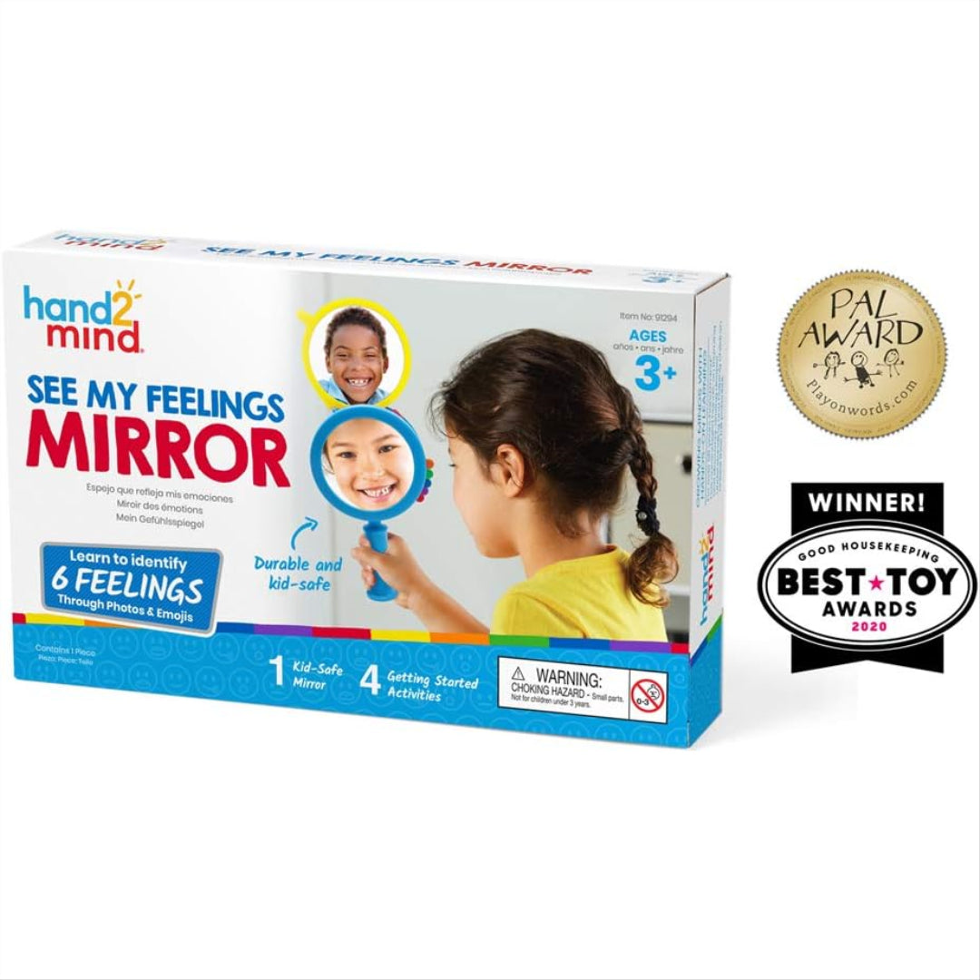 Let's face it (pun intended!), helping our little ones understand their feelings can be tricky. That's why I'm super excited about this brilliant emotions mirror from Learning Resources! It's a shatterproof lifesaver that comes with six real-life photo cards showing different emotions - perfect for those "what's wrong, sweetie?" moments.