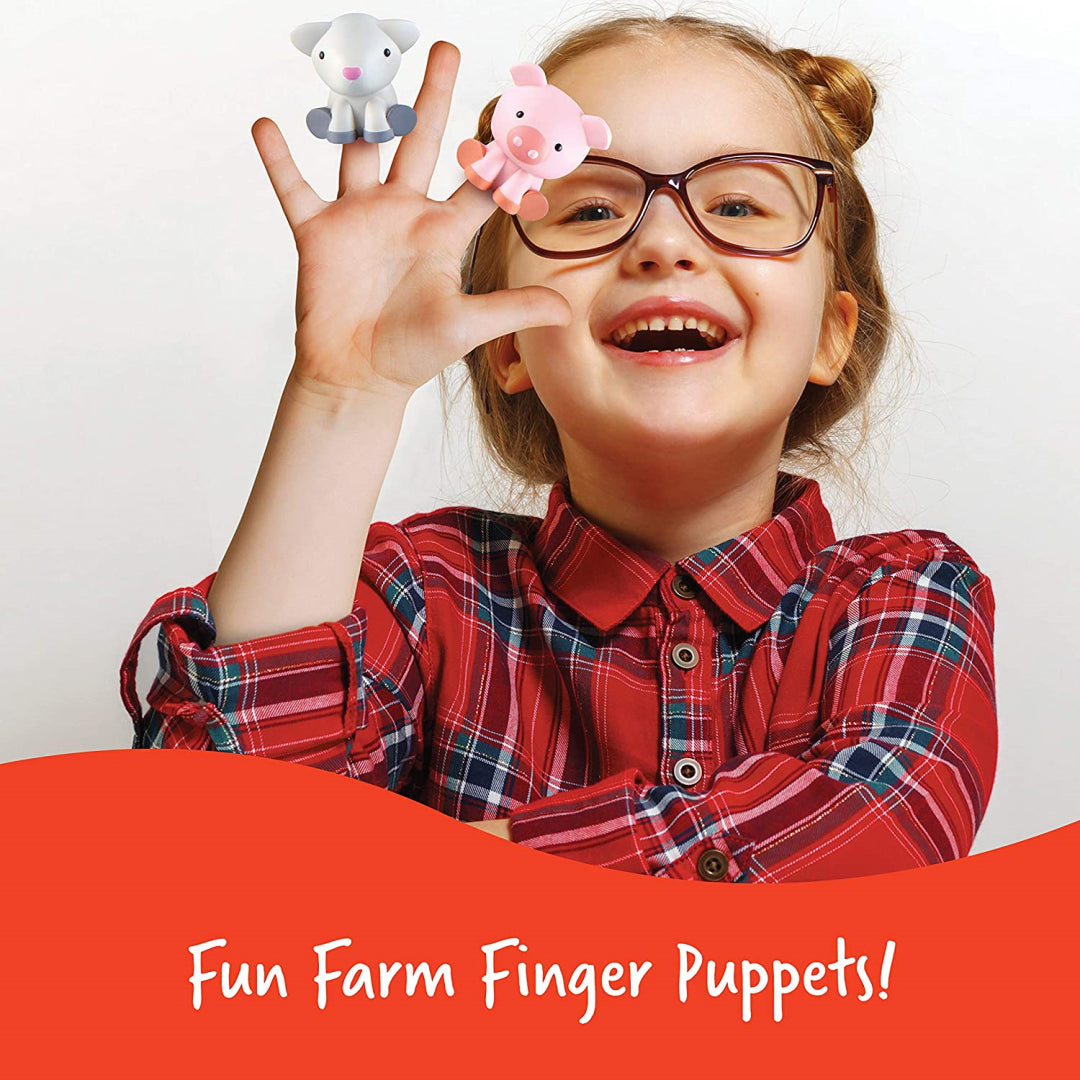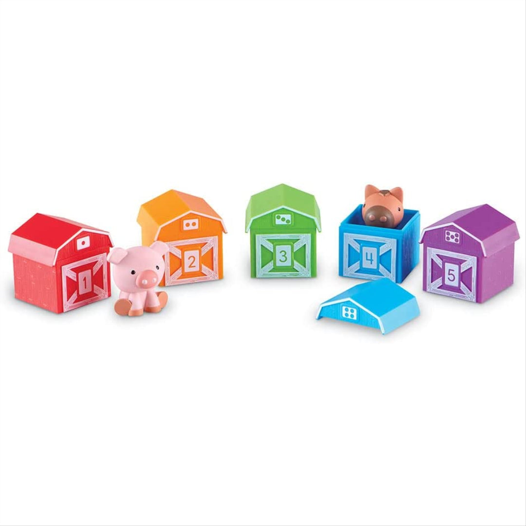 Learning Materials Children may develop their counting, colour, matching, and sorting abilities while having creative adventures with the farm friends at Peekaboo Learning Farm. The five numbered two-piece barns in the set each come in a different vivid colour, such as red, orange, blue, green, or purple. The set's friendly cow, pig, chicken, and other animals are among the many animal fingers that may be seen when each barn opens. With Peekaboo Learning Farms, your child may develop new fine motor skills while playing pretend games and then on to early numeracy and colour recognition. Find the creatures while playing memory games, hide & seek, or simply use your creativity. Every time children pop open or snap shut the two-piece buildings at the Peekaboo Learning Farm, they develop coordination and other fine motor skills.