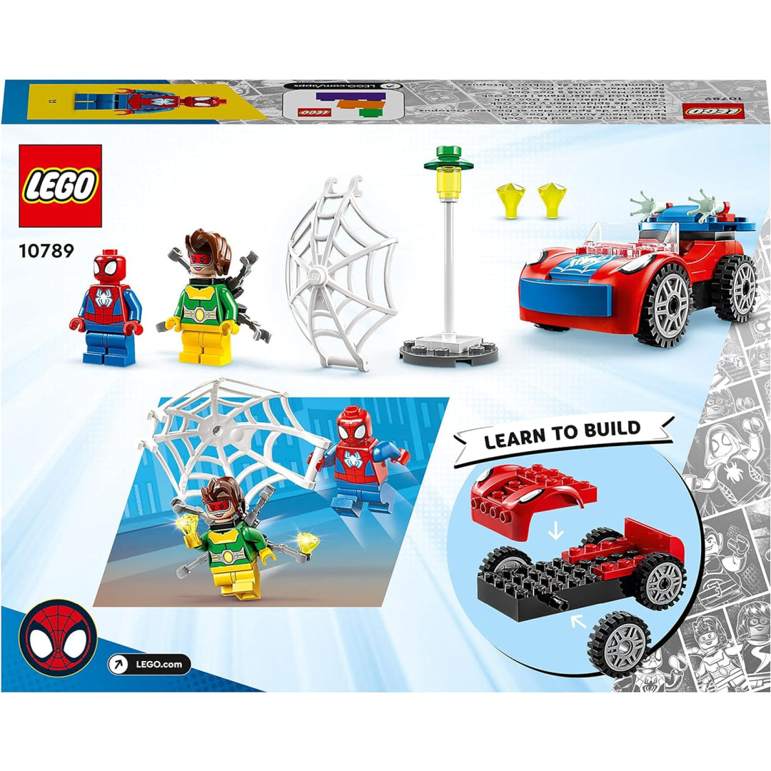 Lego Marvel Spider-Man building toy for kids aged 4+ years features a buildable car with glow-in-the-dark web elements and 2 minifigures. Spidey’s car includes 2 glow-in-the-dark web elements and a special Starter Brick chassis encouraging independent building for youngsters. The set comes with 2 Lego Spider-Man minifigures: Spidey in his classic red and blue costume and Doc Ock with 4 mechanical tentacles and yellow diamonds. Kids can role-play chasing Doc Ock, who has stolen diamonds, in the cool Spider-Man car toy. This super hero playset supports children aged 4+ and makes an excellent gift for Spidey fans.