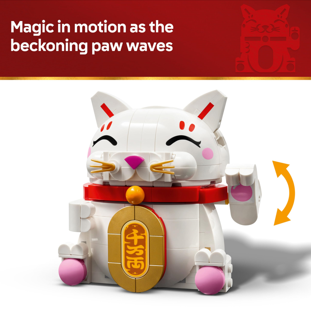 The fun starts with the build itself. Younger builders and grown-ups alike will enjoy assembling this delightful feline friend, complete with smiling eyes, adorable whiskers, blushing cheeks, paw pads and a sweet tail. The authentic details make it feel really special, and you can even choose between adding a gold coin decoration or a wish for good fortune to the cat's tummy. It's those thoughtful finishing touches that make LEGO sets such fantastic value.