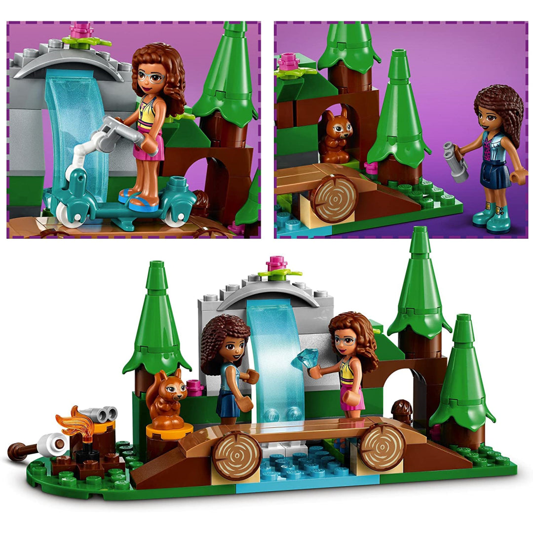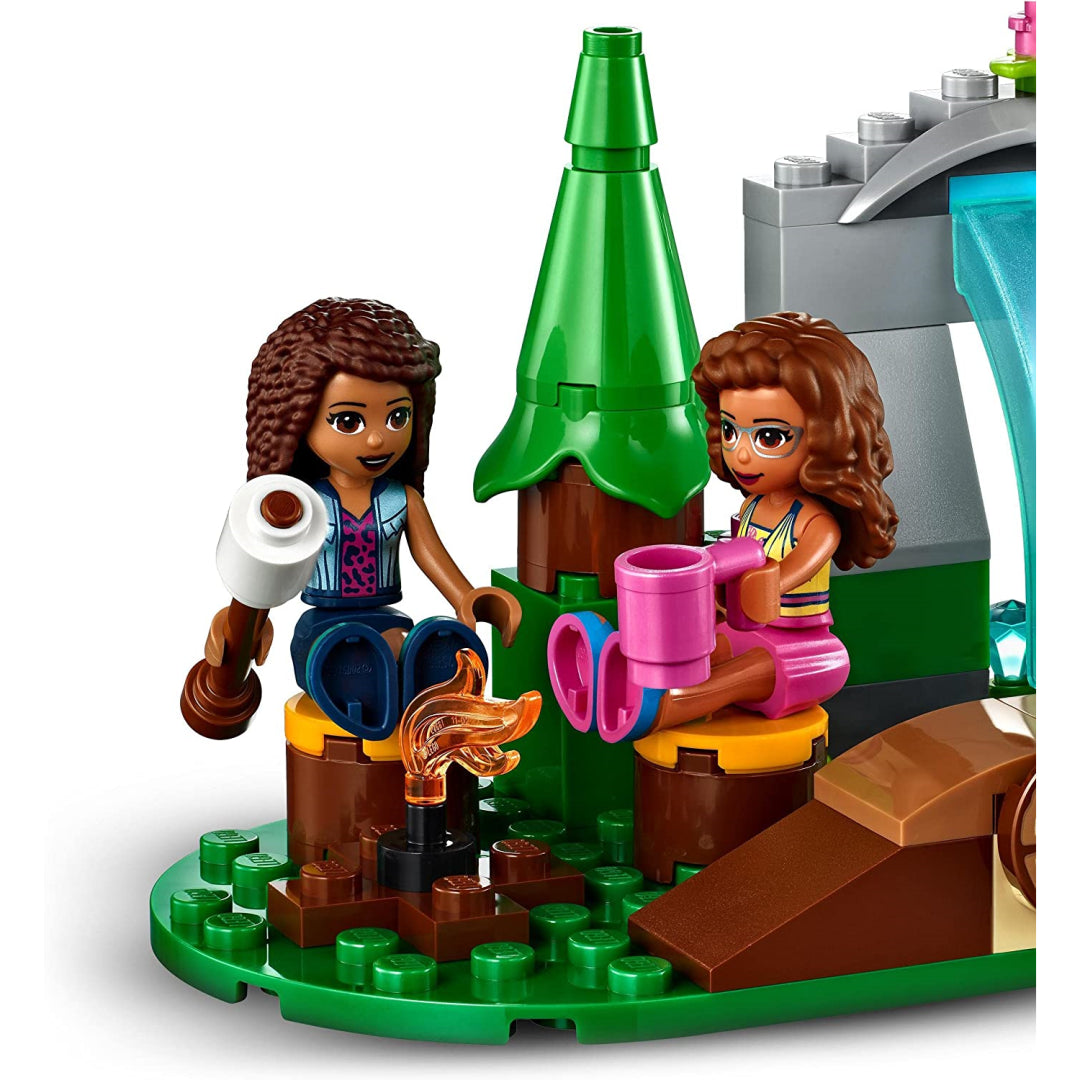 Playing the LEGO Friends camping scenes, finding the gem hidden behind the hinged waterfall, or using the binoculars to look for wildlife are all activities that children will enjoy doing. In addition, there is a detail of a campfire included in the set, as well as a bridge that goes over a river, a marshmallow on a stick, and a toy scooter designed for mini dolls.