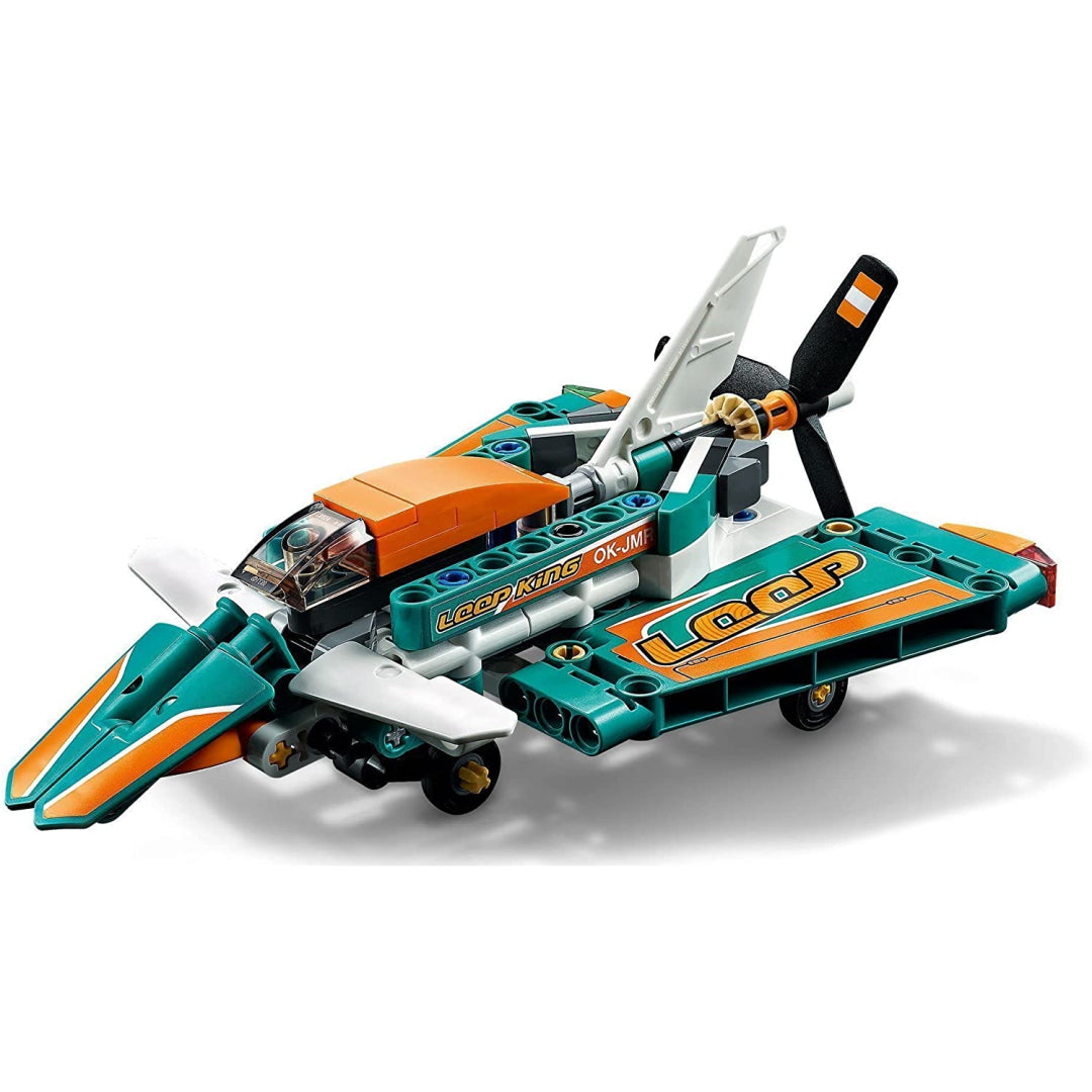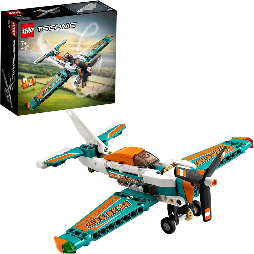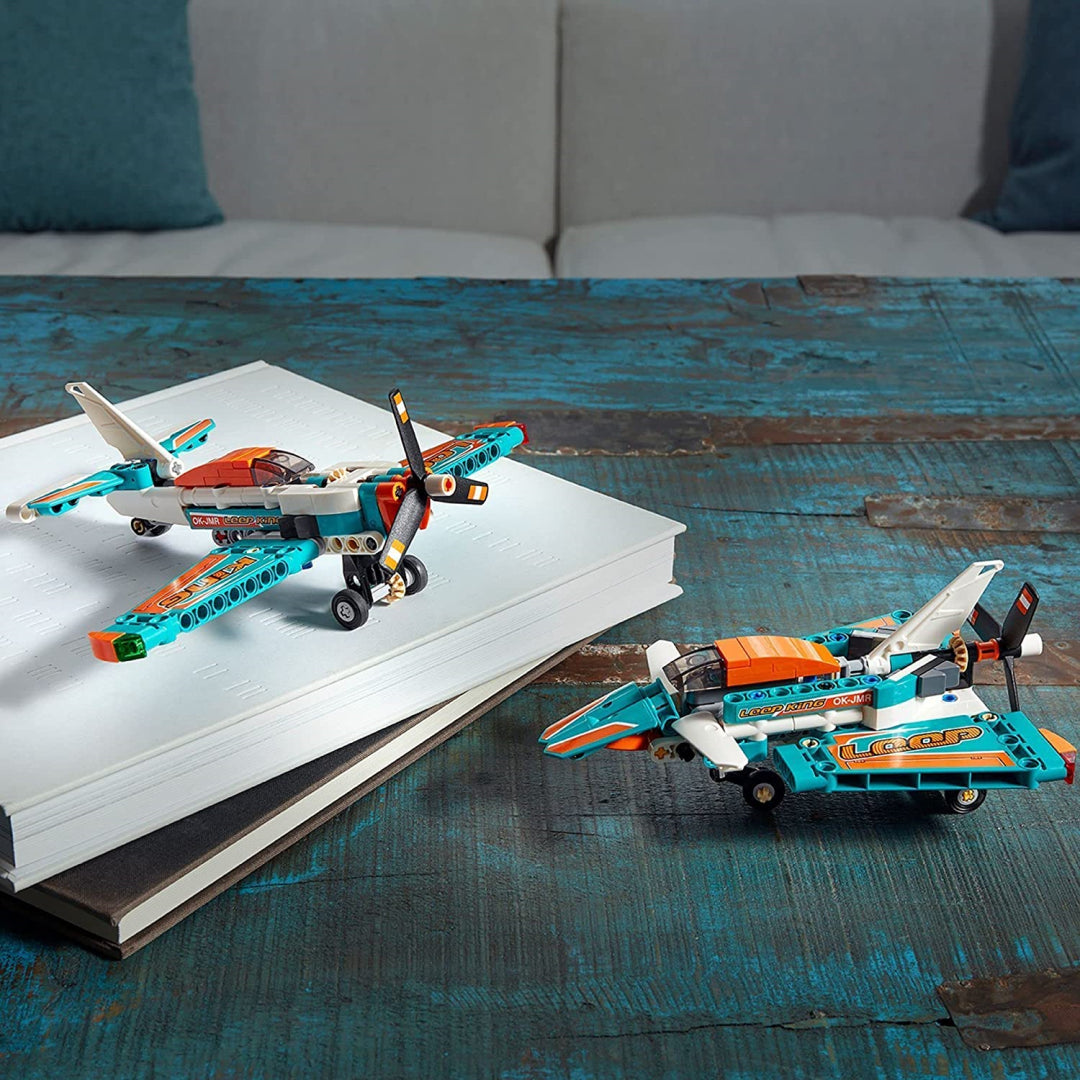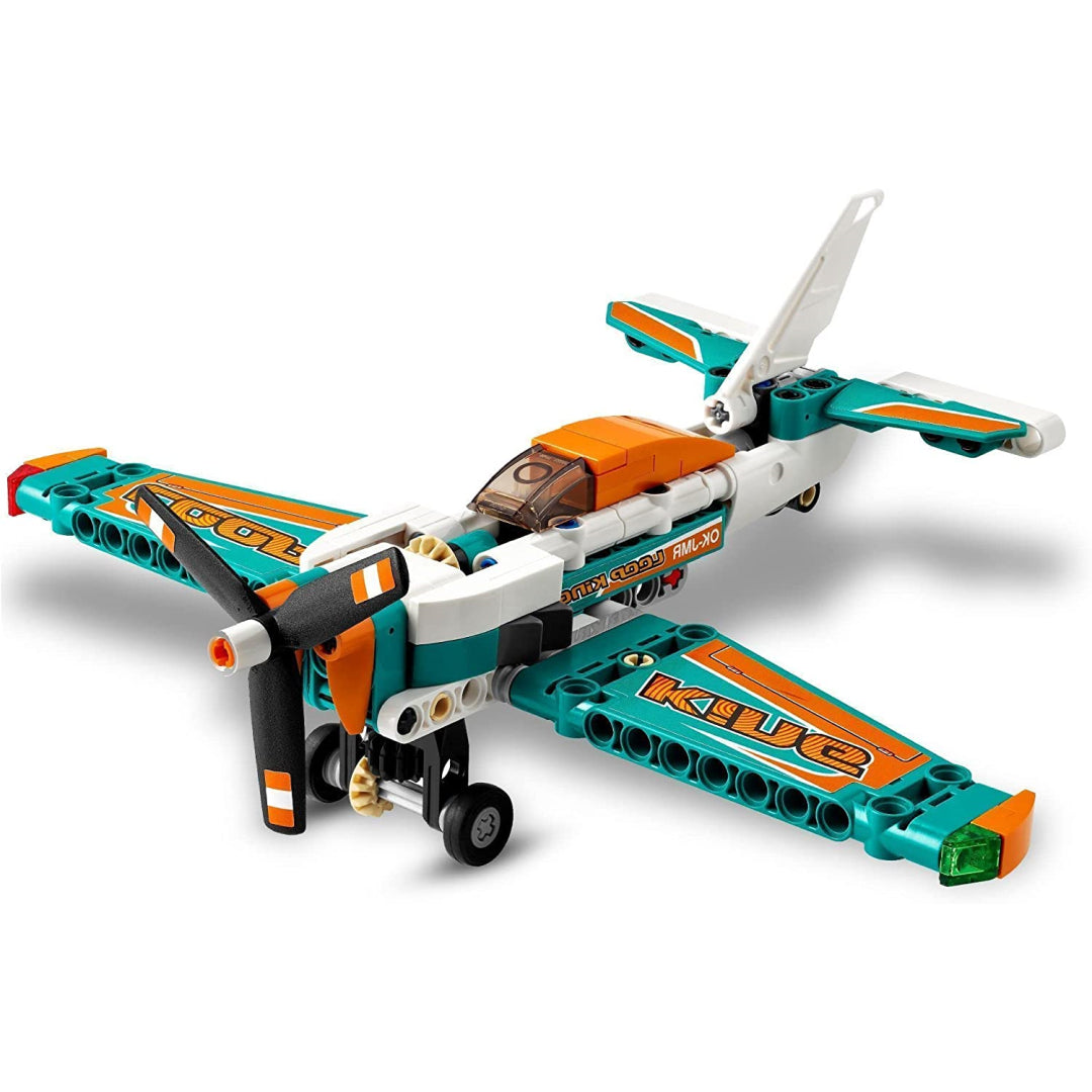 Includes a toy plane model with opening engine covers, landing gear, and a spinning propeller, making it ideal for playing the role of a pilot in a plane racing game.