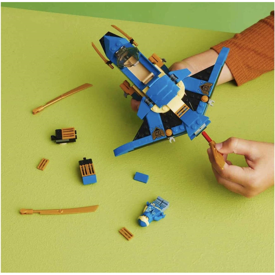 This collectible ninja toy, Jay's Lightning Jet EVO set, features a cool toy plane that can be upgraded into an even bigger model for extra fun. Kids can add 2 stud shooters, golden blades, and a golden rudder to upgrade this blue Ninjago aeroplane action toy featuring an opening cockpit. The collectible ninja building toy for kids includes a Lego Ninjago Jay minifigure with a sword; kids can place it behind the jet's controls. The Lego Builder app guides kids and parents on an easy building adventure where kids can see models in 3D, save sets, and track progress. This 146-piece toy for boys and girls 7 years old lets them play as they build and makes a wonderful everyday treat or birthday gift idea.