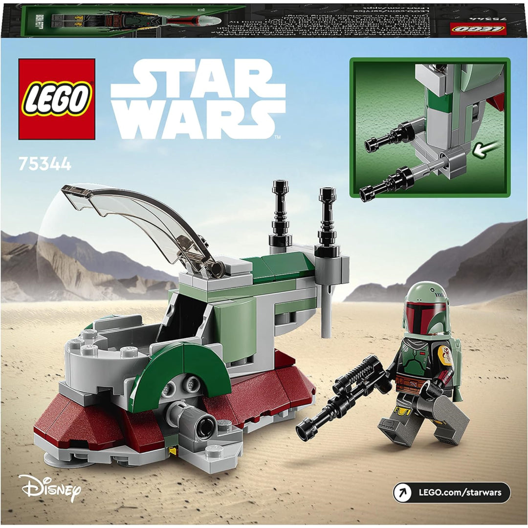 Fans can play out Star Wars: The Book of Boba Fett and The Mandalorian stories with this quick-build microscale Boba Fett's starship building toy. The Lego Star Wars Microfighter set features an opening cockpit for Boba Fett Lego minifigure, 2 flick shooters, adjustable wings, and landing modes. This Lego Star Wars The Mandalorian set includes a blaster and a jetpack for the Boba Fett Star Wars character minifigure to inspire creative play. This Star Wars building toy can be combined with other Lego Star Wars Microfighters in the collection for even more action-packed stories. This mini Lego brick-built toy starship offers an easy building experience, thanks to the interactive Lego Builder app with zoom and rotate tools. Star Wars model building kits make a perfect birthday gift or special occasion treat for children aged 6 and up and fans of the Mandalorian.