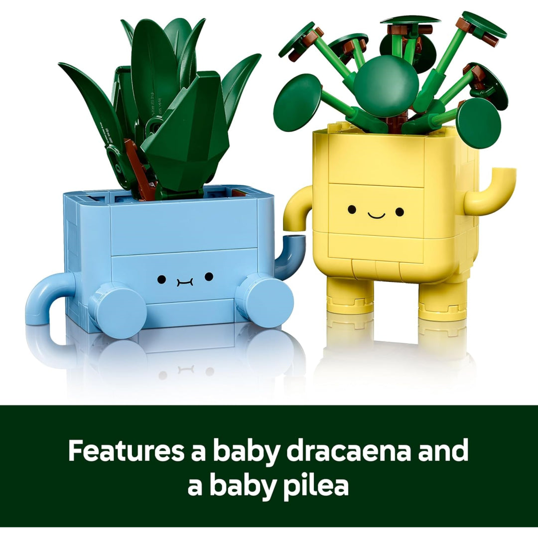 Create lifelike artificial plants with the Lego Botanicals Happy Plants set, featuring buildable baby dracaena and pilea plants in swappable blue and yellow pots, ideal for kids 9 and up, plant enthusiasts, and creative builders. This versatile decor piece brightens any desk, shelf, bedroom, home, or office space while offering an engaging solo or group building experience that can be expanded by combining with other Lego Botanicals collections for an ever-growing display of colorful faux plants.