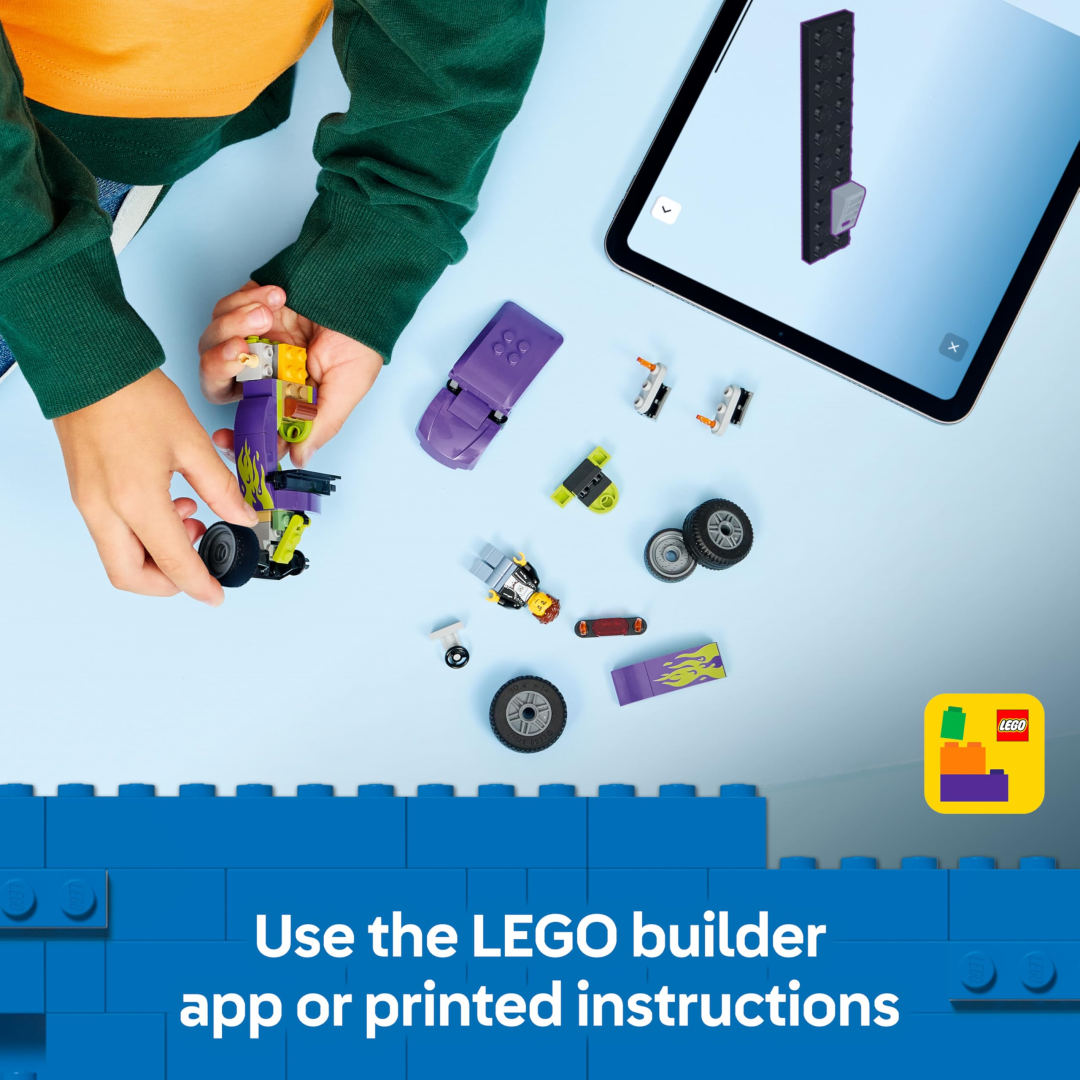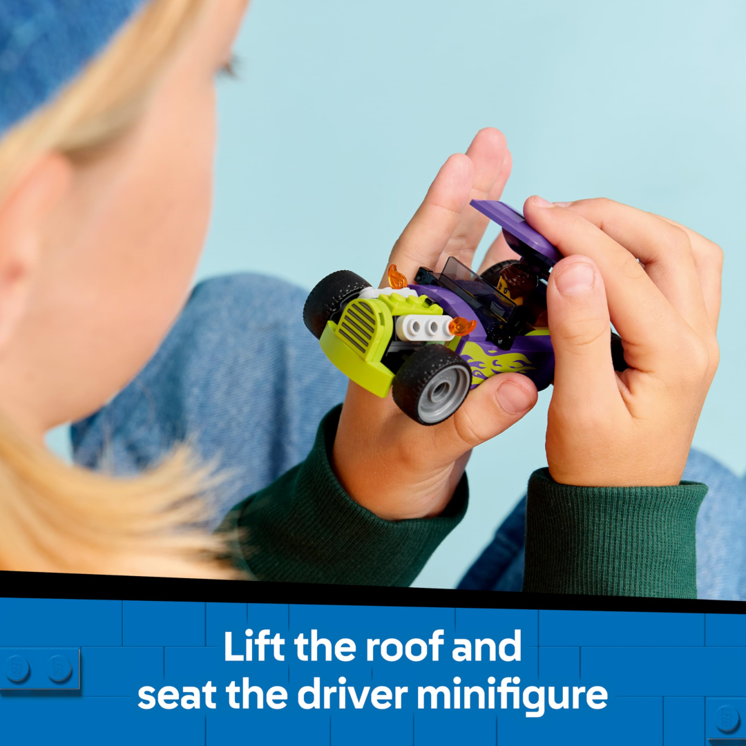 Everything's included to build one seriously cool hot rod complete with oversized rear tyres and a bold purple colour scheme decorated with neon green flames. It's the kind of toy that looks impressive displayed on the shelf but is actually designed for proper hands-on play. Lift the roof off, pop the driver minifigure behind the wheel, and watch as your little ones zoom off into their own racing adventures.