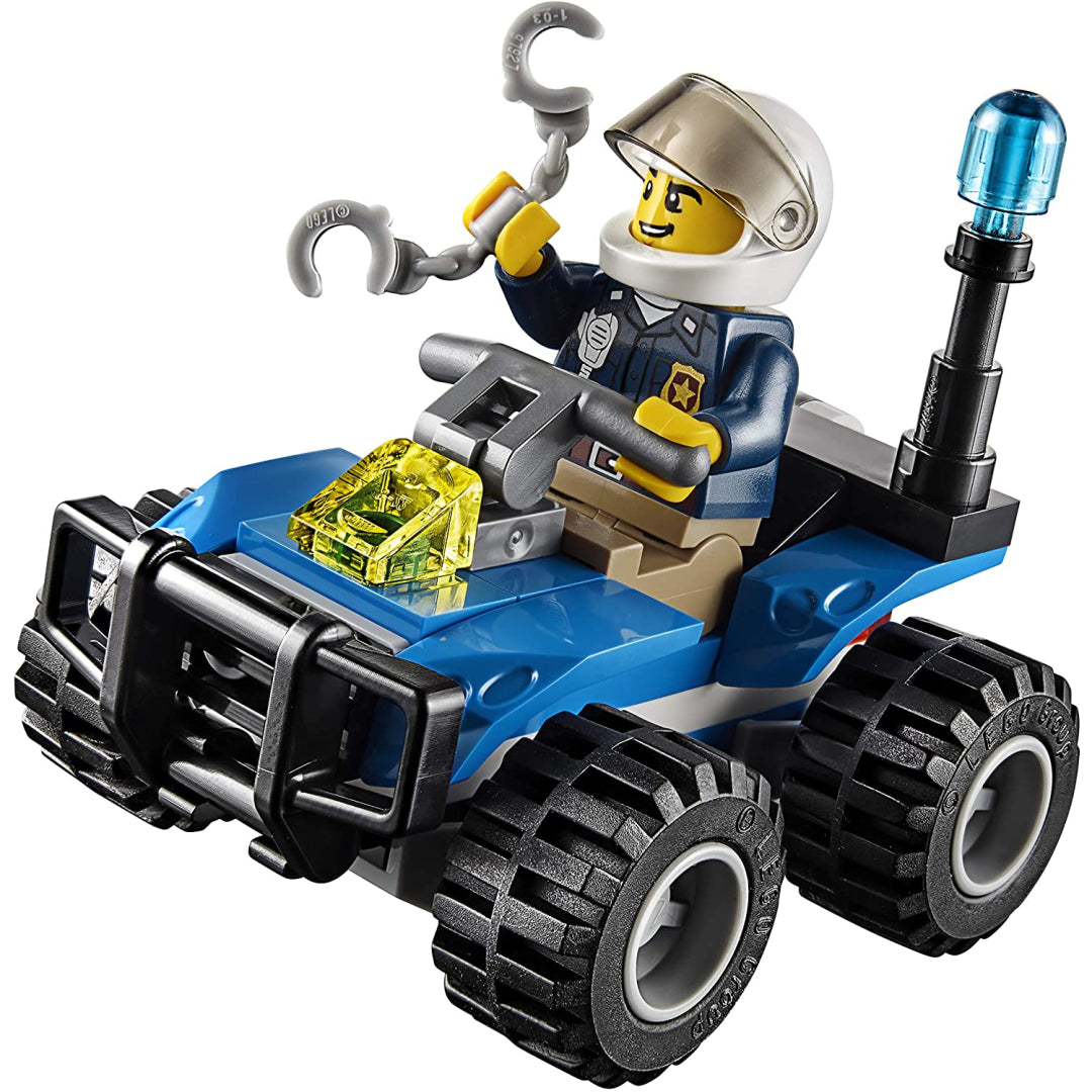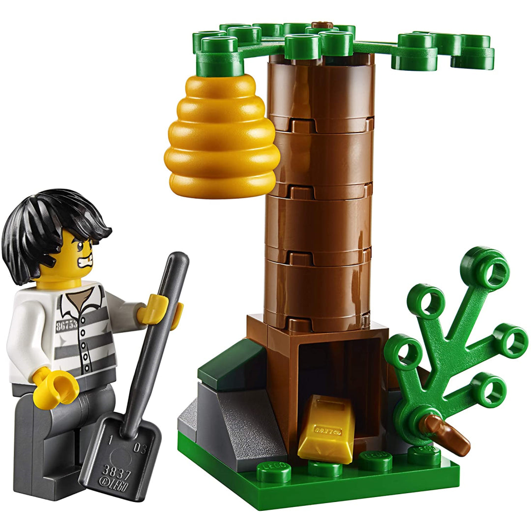 Two Lego City police officers are in desperate need of your assistance in apprehending a dishonest pair of fugitives! Build up the squad's ATV and the beehive-infested tree in order to deliver a couple of unpleasant shocks to the nefarious outlaws on the go! Four minifigures and a slew of accessories are included for hours of fun and inventive play.
