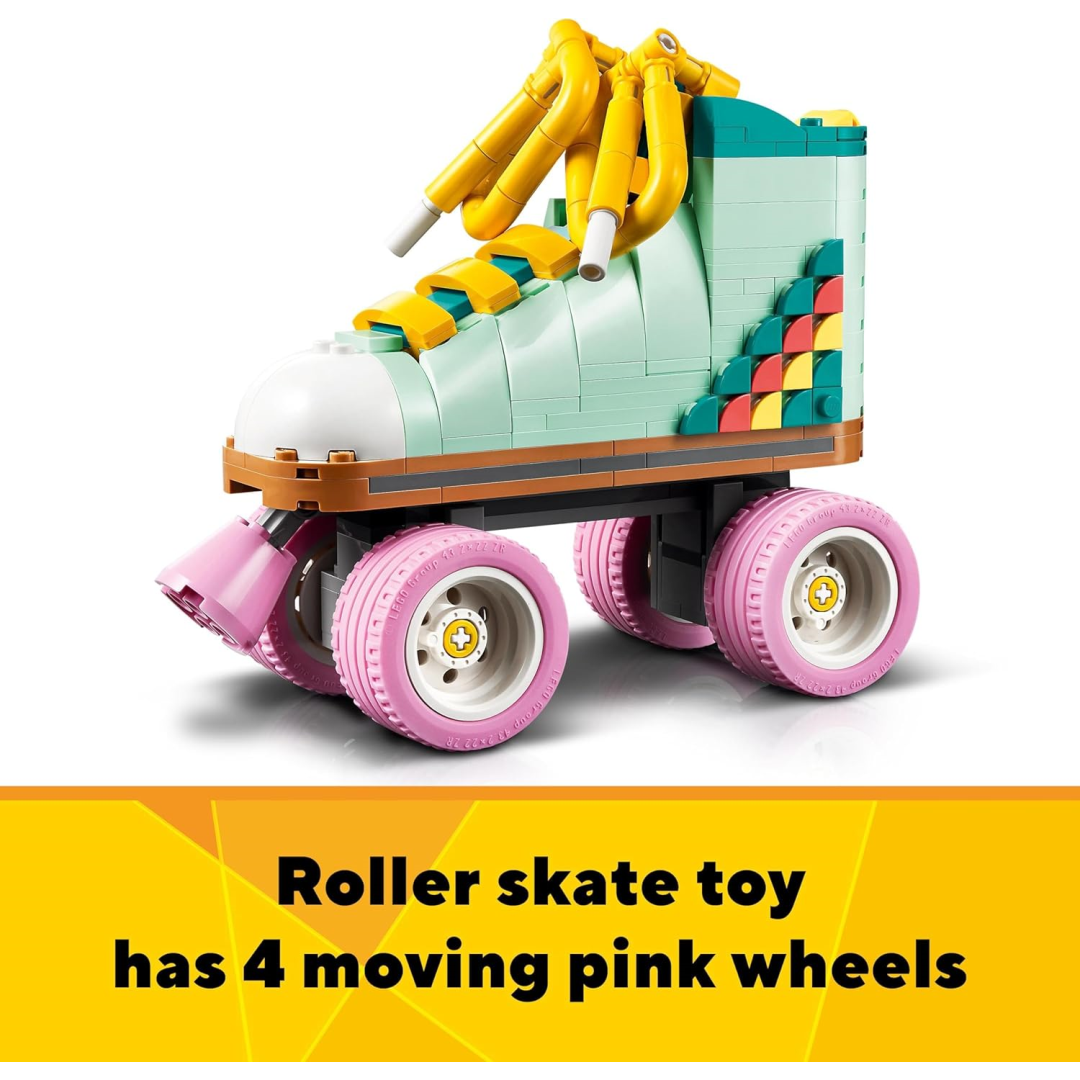 Using the same bricks, children can construct and reconstruct three pop culture icons with the LEGO Creator Retro Roller Skate toy, which is a great play for both boys and girls aged eight. Kids may build three classic models with limitless play possibilities: a boom box radio, a tiny skateboard toy, and a roller skate toy. Each model offers different narrative play chances. While the skateboard has four moveable wheels for quick adventurous play, the roller skate has four pink rolling wheels. All three of the LEGO vintage models make entertaining and striking bedroom decorations after playing is over. For children ages 8 and above, this multipurpose toy is an ideal birthday present, particularly for those who love music and are imaginative and want to create and play.