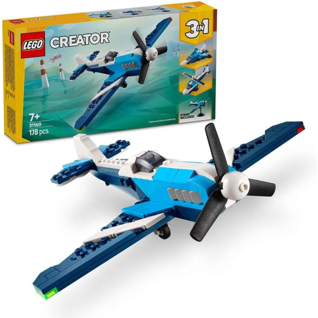 Triple the building fun with this amazing LEGO Creator 3-in-1 set that's perfect for young aviation enthusiasts! Your little ones can build three different vehicles from the same bricks - a super-cool race plane with spinning propeller, a sleek jet with rolling wheels, or a helicopter with rotating rotor blades. Each finished model comes with its own display stand, perfect for proudly showing off their latest creation.