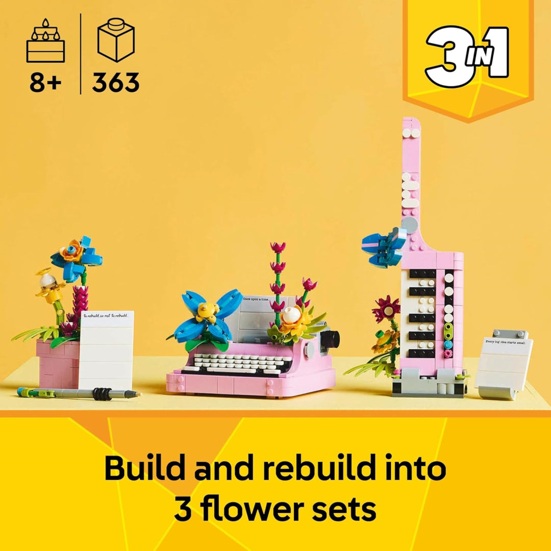 Perfect for creative parents and kids alike, this LEGO Creator 3-in-1 set brings triple the fun without triple the cost! Transform this charming vintage-style typewriter with flowers into a groovy musical keytar or a delightful flowerpot setup - all from the same bricks. Suitable for ages 8+, it's brilliant for rainy day activities or quiet afternoon crafting sessions.