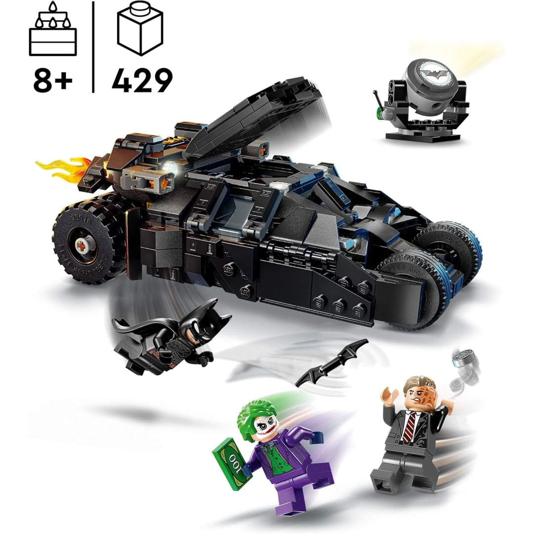 For children ages 8 and above, the Lego DC Batman Tumbler kit is ideal since it brings the legendary Batmobile from The Dark Knight movies to life. This intricate Batmobile opens up to expose an instrument panel and miniature cockpit, and it has a flame element attached to the exhaust pipe. Lego Batman, The Joker with a bundle of cash, and Two-Face holding his trademark silver coin are all part of the set. With the Bat-Signal projector's 360-degree rotating function, children may call forth Batman (but it doesn't light up). This kit provides hours of imaginative play and creative construction, making it a great gift option for young Batman and DC Super Heroes lovers. To make constructing even more enjoyable and engaging, the Lego Builder app also offers digital capabilities for zooming, rotating, and tracking progress.