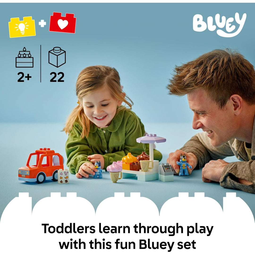 Transform your little one's playtime into a delicious adventure with this LEGO DUPLO Bluey Ice Cream Trip set! Perfect for savvy parents looking to maximise value, this set combines learning and fun in one budget-friendly package. Designed for ages 2+, it includes everything your toddler needs for ice cream shop adventures - Bluey, Dad, a toy car, and a complete ice cream stand with scoops and cones.