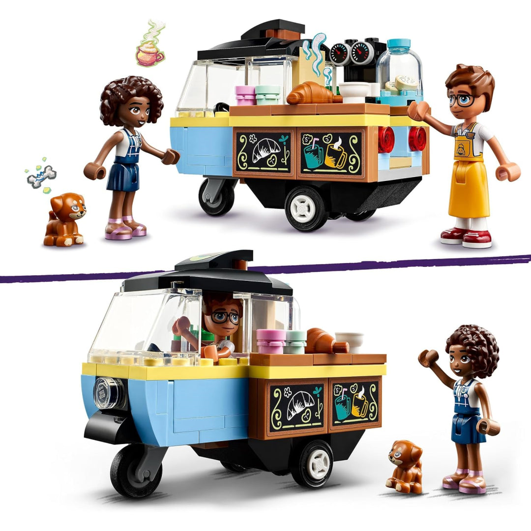 The LEGO Friends Mobile Bakery Food Cart comes with two mini-dolls, a dog toy, a cart, and a tonne of playthings for youngsters and girls aged six and above.