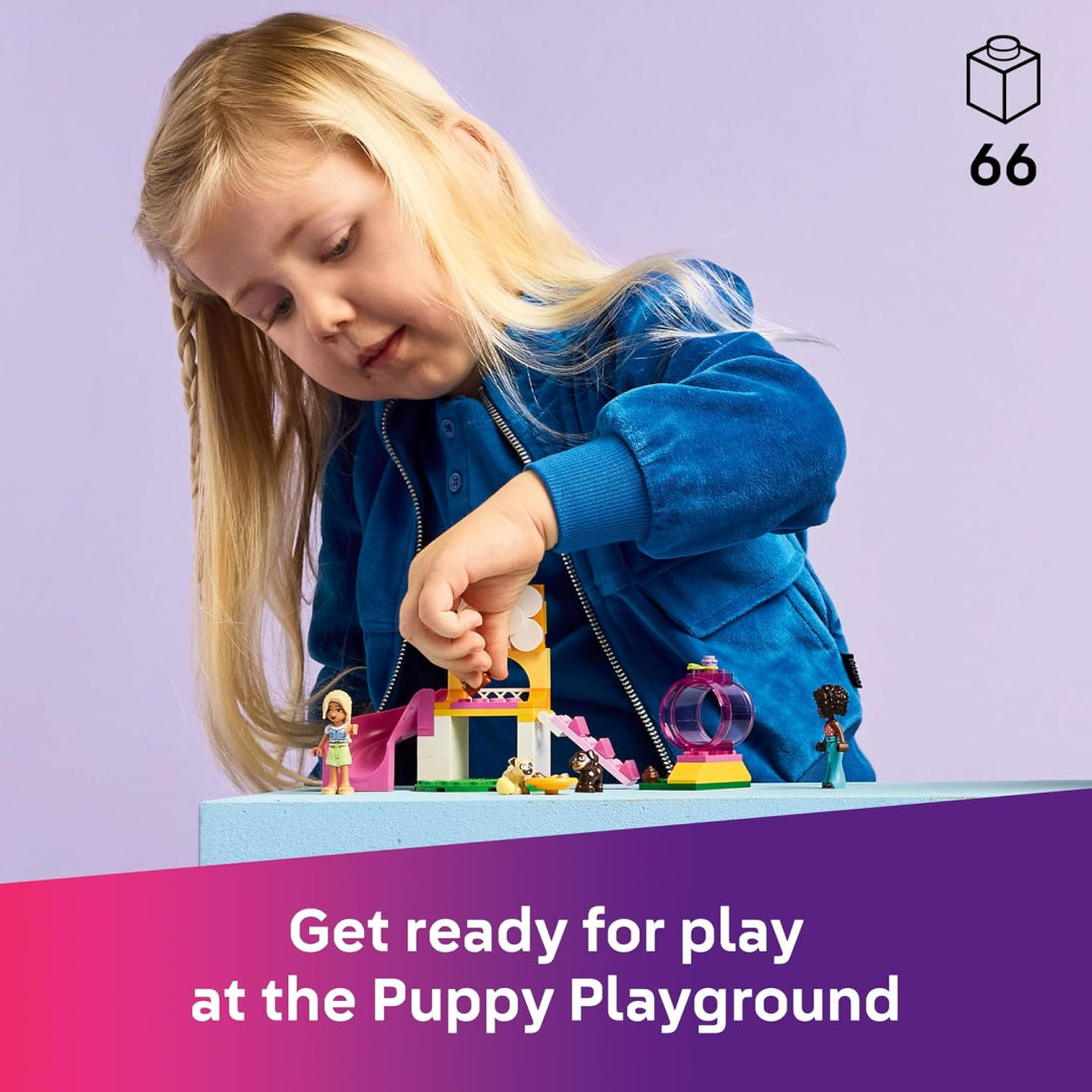 Get ready for playtime perfection with this amazing LEGO Friends Puppy Playground set! Perfect for children 4 years and up, this delightful set brings together Aliya and Sara mini-dolls with three adorable puppies - Aira, Dango, and Maple - for endless fun-filled adventures.