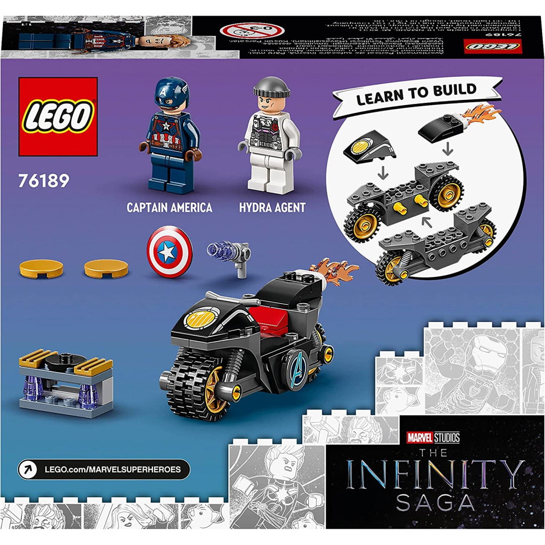 Preschoolers will be able to construct the chunky-wheeled motorbike with ease thanks to the inclusion of a huge Starter Brick and straightforward step-by-step instructions. Minifigures of Captain America, complete with his iconic shield, as well as agents of Hydra, are included so that children may play out an infinite number of heroic escapades. Children may re-create the action seen in Marvel Studios' Avengers: Age of Ultron by driving a Captain America minifigure on his toy motorcycle into combat against a villainous Hydra agent.
