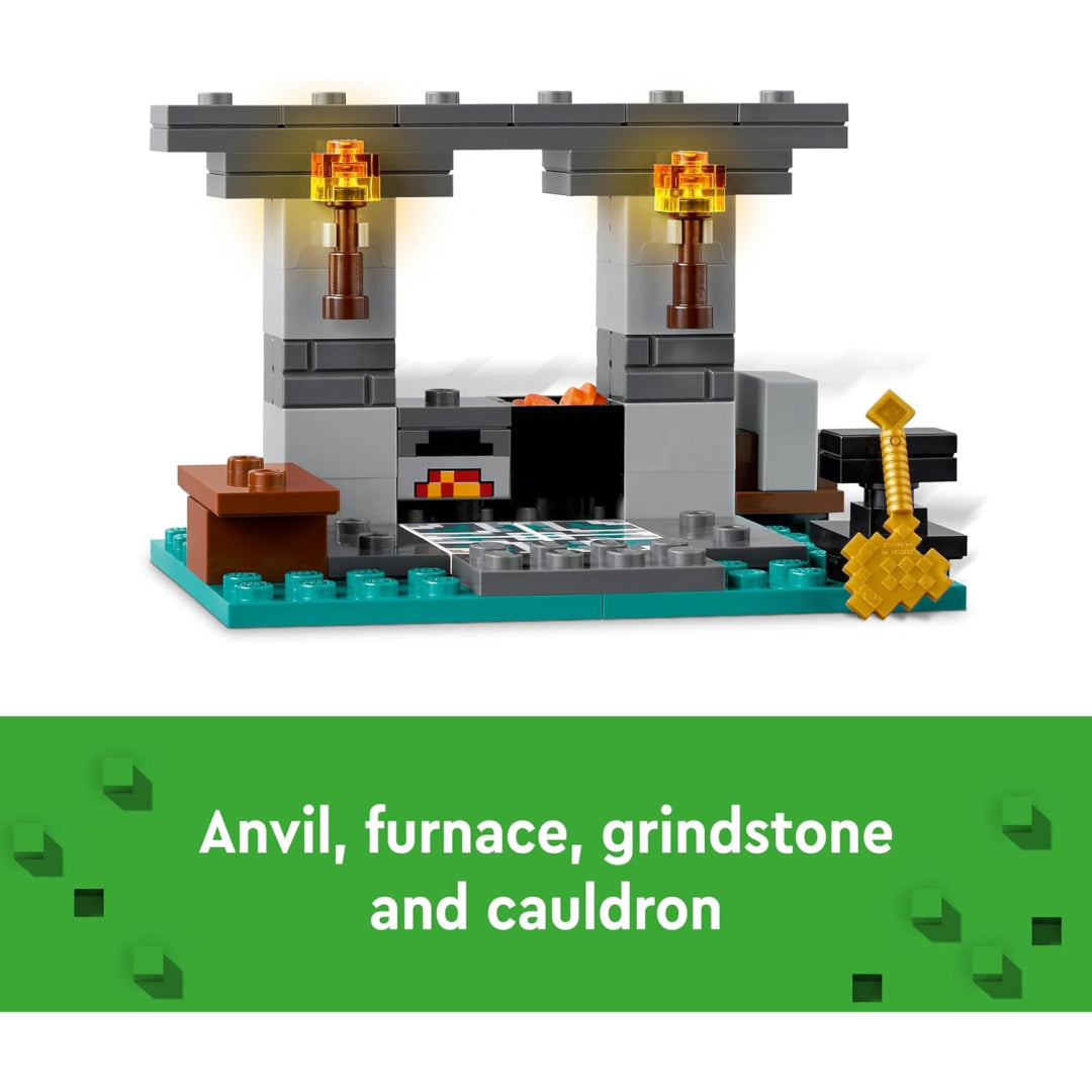 Watch their imagination soar as they build and play with Alex (complete with diamond sword) and the Armoursmith figurines in their very own weapons workshop. The set features a proper Minecraft workspace with all the essentials - anvil, furnace, grindstone and cauldron, plus an exciting Nether portal and a dedicated armour exhibition room with weapon chest.