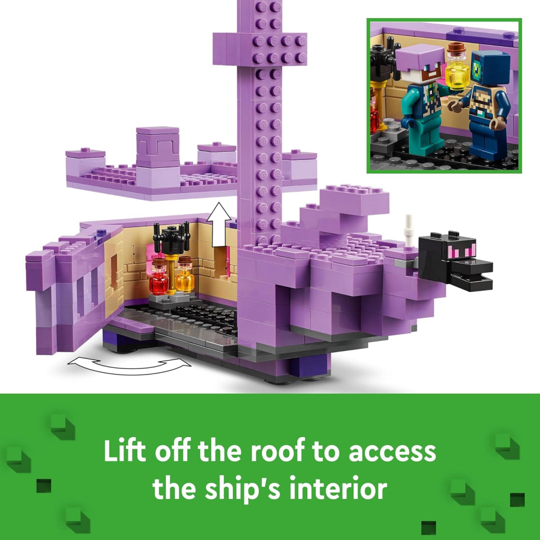 The LEGO Minecraft End Ship comes with a removable roof for easy access, making it perfect for creative storytelling and extended play sessions. The addition of elytra wings and a firework rocket means endless possibilities for imaginative End dimension adventures - ideal for keeping the kids entertained while you catch up on those design projects.