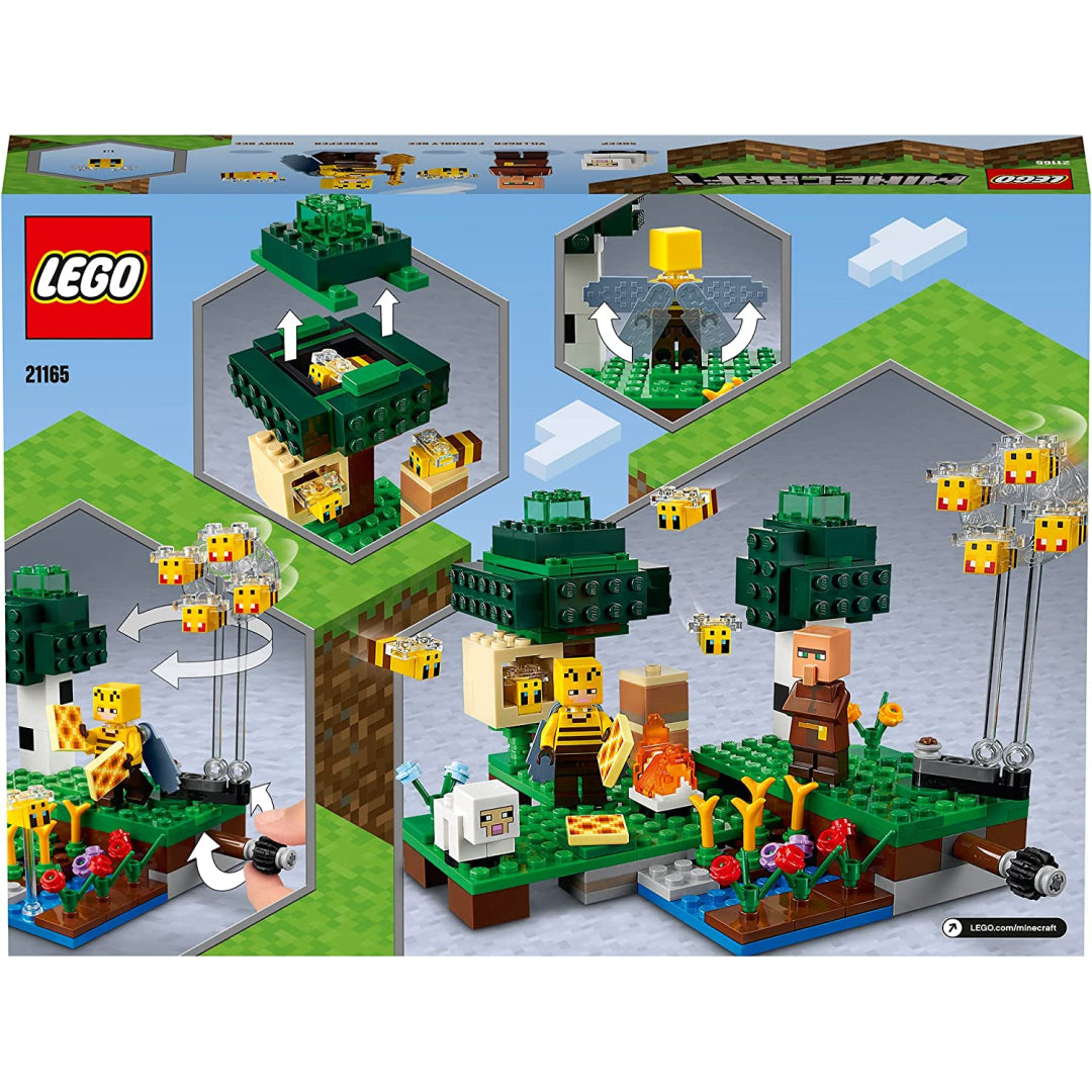 Children may team up with four benevolent bees in Minecraft and assist the beekeeper in repelling four hostile bees that are flying in circles and terrifying the sheep and the villager. Included in this set are a villager, a newborn sheep, a beekeeper with elytra wings, and a rotating flying feature from which the bees may fly free to cause mayhem! When children flip the handle on this set, which is filled with fun elements like the bees' tree refuge, angry Minecraft bees begin to fly about in circles and attack the youngsters.