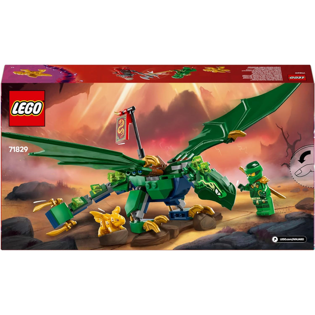 For children aged 6 and above, this Lego Ninjago Lloyd's Green Forest Dragon kit is ideal for recreating thrilling airborne sequences from Ninjago Dragons Rising season 3. The posable dragon has a saddle for a minifigure to sit on, as well as a movable neck, legs, hands, tail, and enormous wings. Two Lego Ninjago minifigures are included in the set: a Dragonian Scout warrior with an axe and Lloyd brandishing a golden katana blade. A golden Dragon Baby toy is also included with the set, giving young ninja lovers even more entertaining and caring play options. For children who like dragons and ninjas, this construction kit is an excellent birthday present since it offers an enjoyable build-and-play experience.