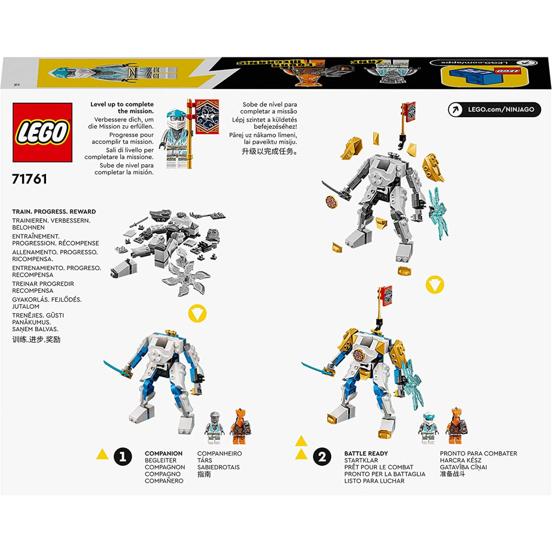 The item consists of a mech action figure with posable limbs, a big spinning star weapon, and a cockpit in which children can fit a NINJAGO Zane minifigure.