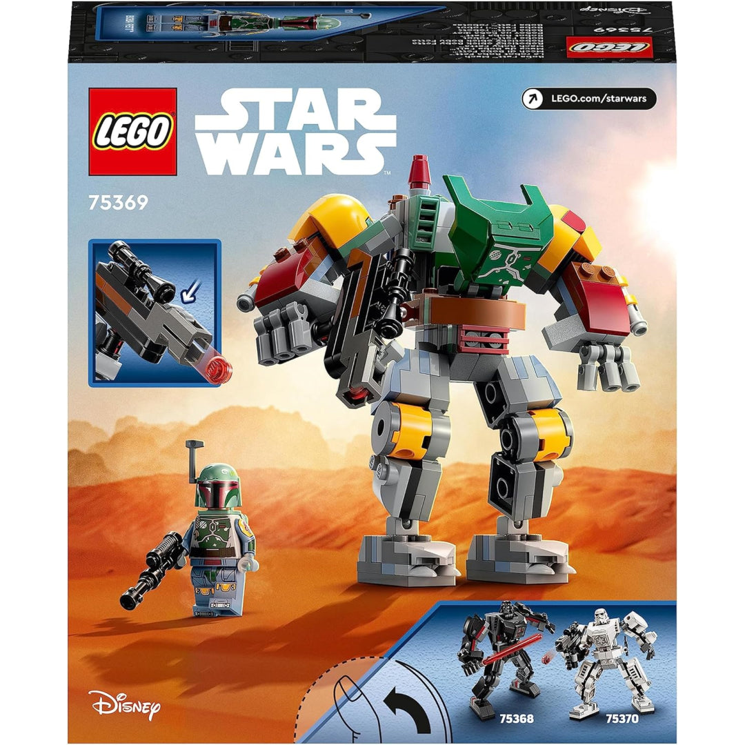For children aged six and above, the Lego Star Wars Boba Fett Mech is an action figure toy that allows them to play out epic Star Wars battles. It is simple to assemble. Posable limbs, a minifigure cockpit, a big stud-shooting blaster, and a jetpack with a flick shooter are all features of this brick-built Lego Star Wars action figure. This Lego Star Wars construction toy set also includes a Boba Fett Lego minifigure with a blaster gun and jetpack attachment piece. Kids' bedrooms may be used to showcase this interchangeable Star Wars figure, which is more than 13 cm (5 in) tall, in between play missions.