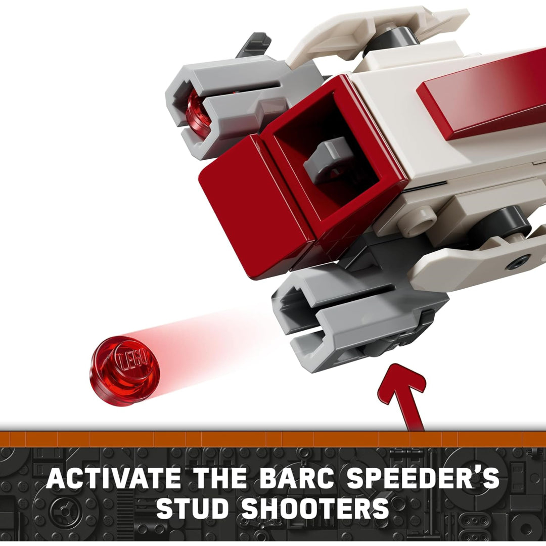 Calling all savvy parents and Star Wars enthusiasts! This LEGO Star Wars BARC Speeder set brings the thrilling Season 3 escape sequence to life, perfect for shared play sessions with the little ones. Your youngsters will adore recreating Grogu's daring escape with this detailed playset, featuring two 501st Clone Troopers armed with blasters and Kelleran Beq wielding his blue and green lightsabers.