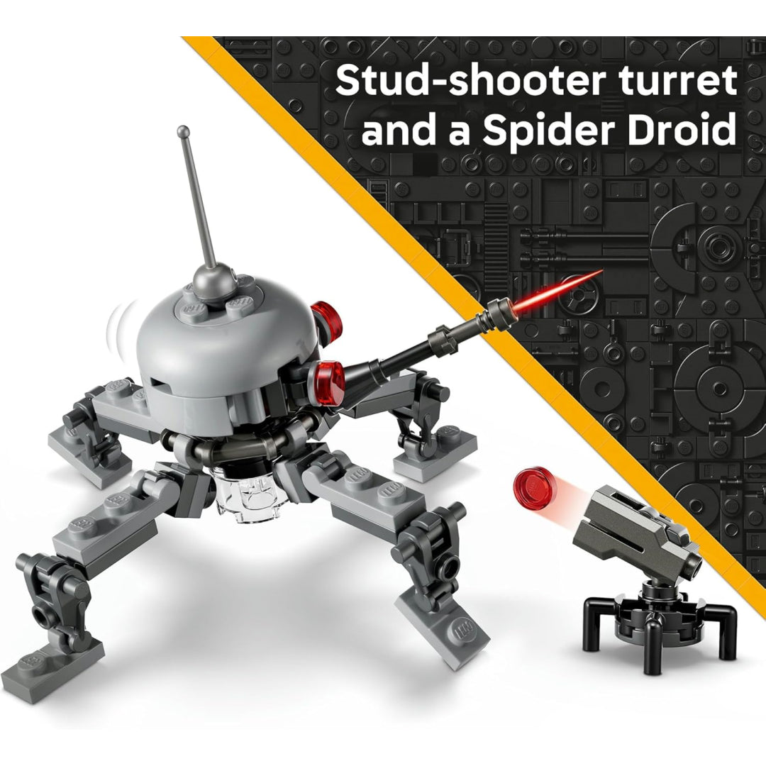 Watch your little Jedi's imagination soar with the included AT-RT walker, complete with working cockpit and storage, plus a moveable Spider Droid that adds extra excitement to every adventure. The set comes packed with stud shooters and weapons for immersive play sessions that'll keep them entertained for hours.