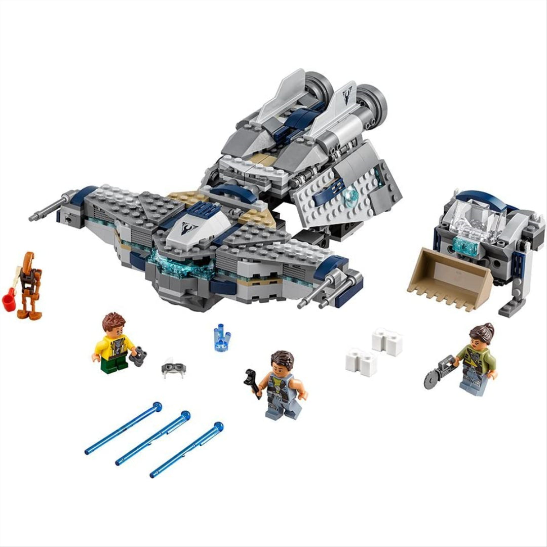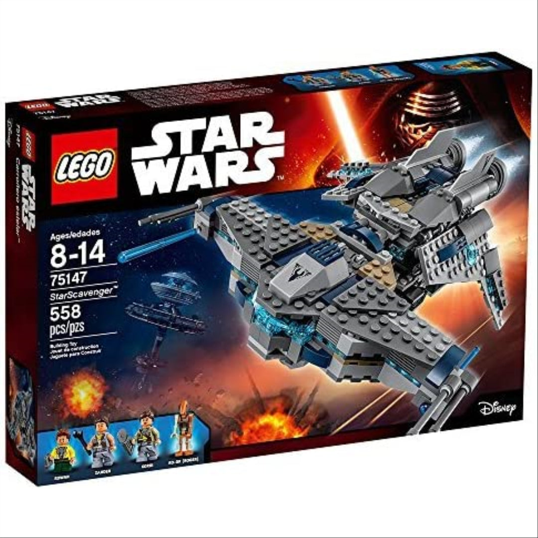 Rebuild the modular model into a variety of configurations; front cockpit section can be separated for a speedy getaway; includes 3 mini figures: Rowan, Kordi, and Zander, as well as R0-GR (Roger), the friendly droid; StarScavenger in closed mode measures over 3 (9cm) high, 8 (20.3cm) wide, and a mini scavenger vessel with salvage scoop and space for a minifigure and Droid; StarScave