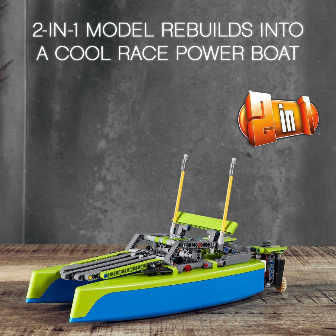 Model float for the first time - check out this classic 2-hull catamaran design with functional sails, daggerboards, and rudder! The sails may be angled for a racing position, the two daggerboards can be raised and lowered for maximum stability, and the rudder can be used to steer.