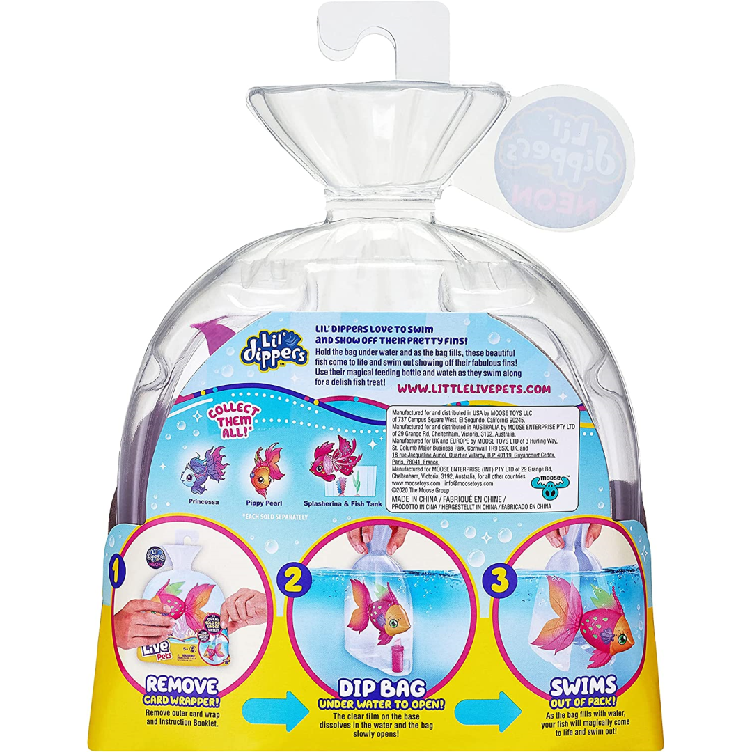 Your very personal "wow" effect when unpacking Lil' Dippers that come to life in the water! Watch Princessa swim out of the bag when you dip her underwater!