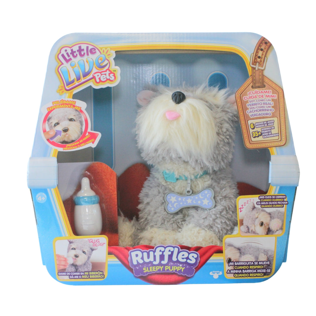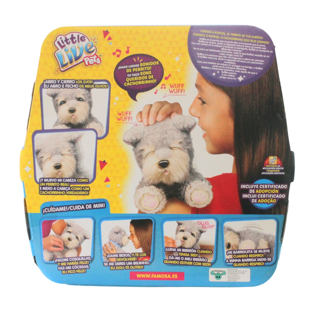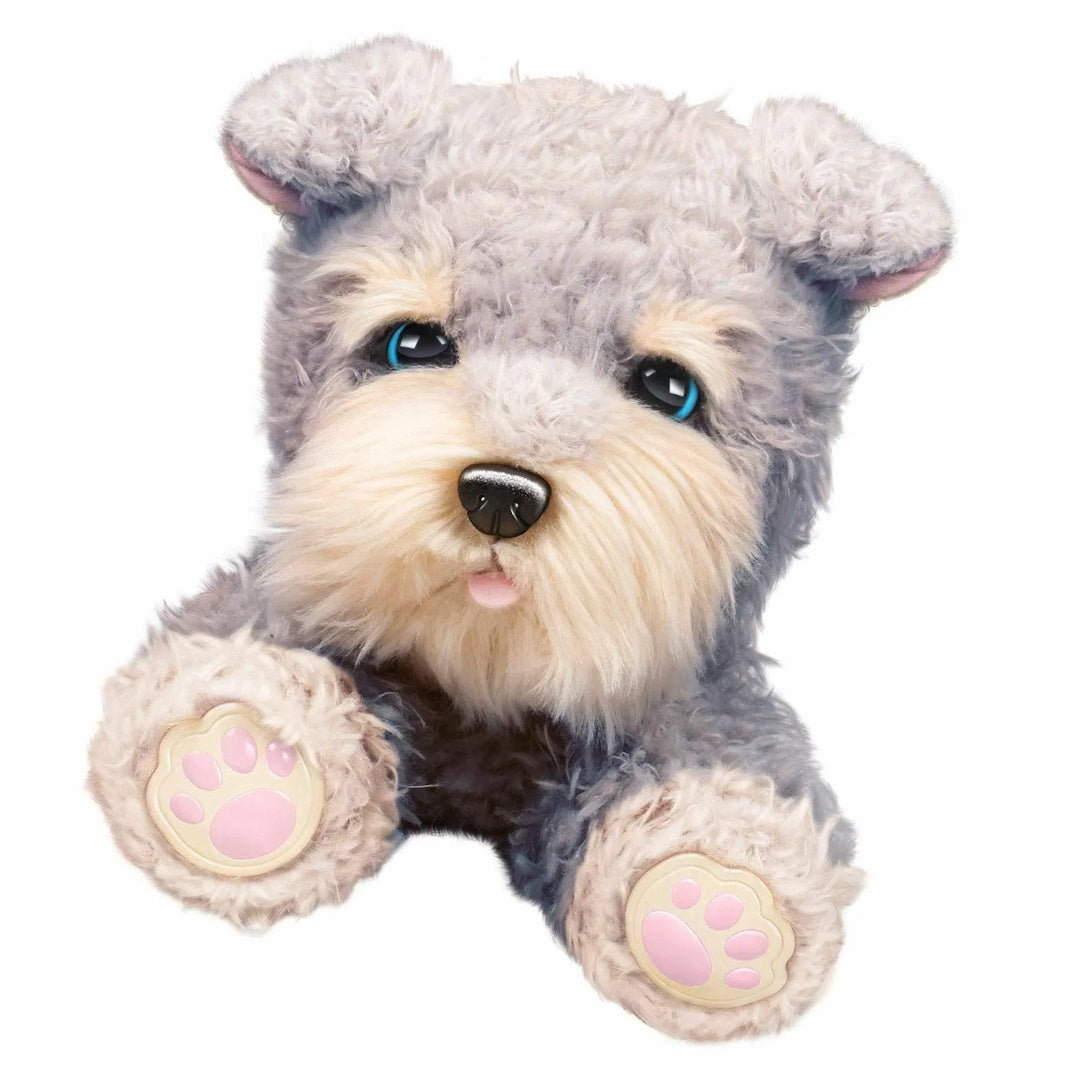 Adopt a puppy from Little Live Pets and bring your own Snuggly Schnauzer home. Your dog has realistic breathing and feeding animation, and it moves and feels just like a real puppy. Your dog will cuddle and enjoy having their ears stroked and their stomach tickled! and will make dog noises. When it's time to feed, give them their bottle, put your puppy to sleep, and pay attention to their gentle breathing. with adorable two-tone eyebrows and muzzle, and soft, fuzzy fur. Along with a feeding bottle and bone, each puppy also comes with their own adoption certificate!