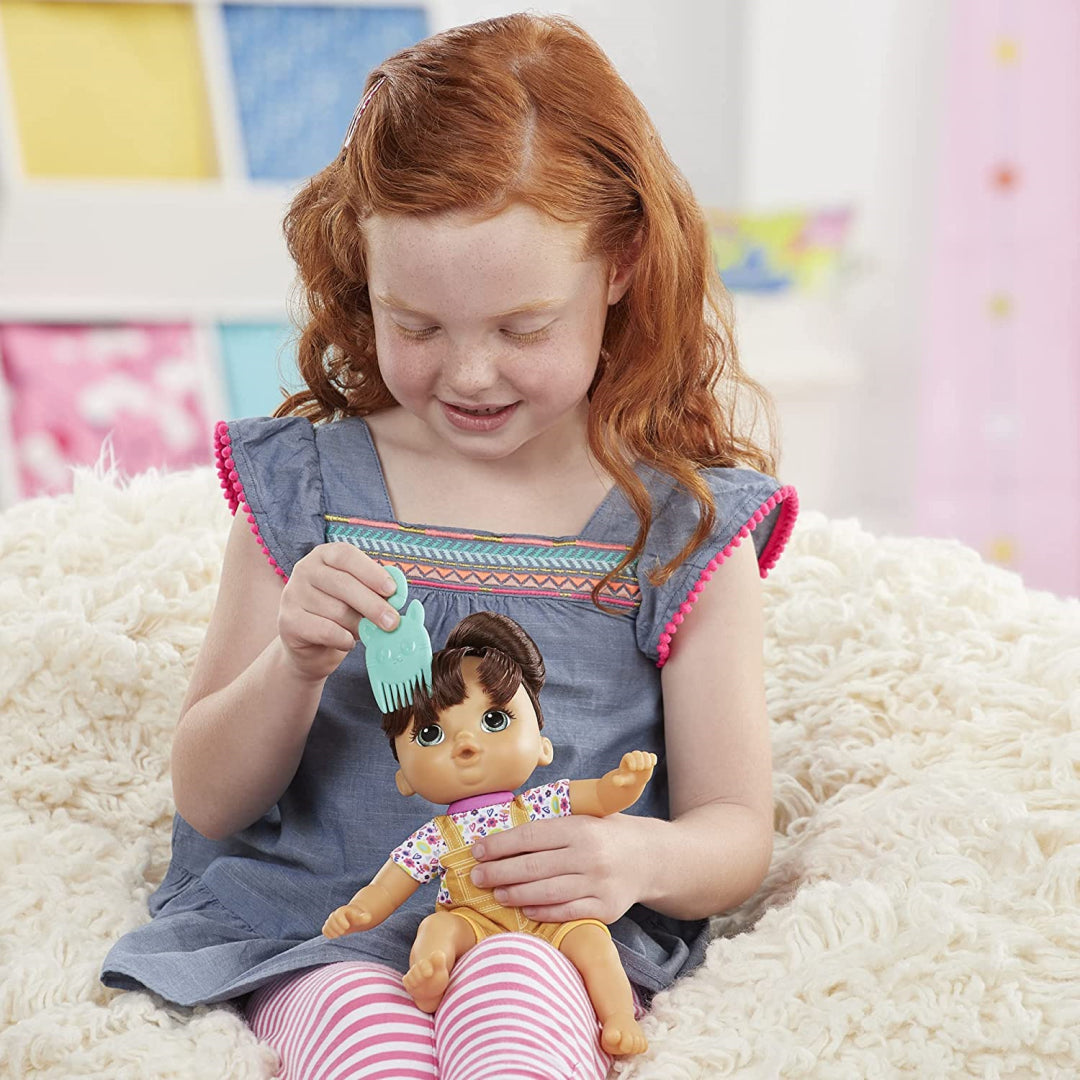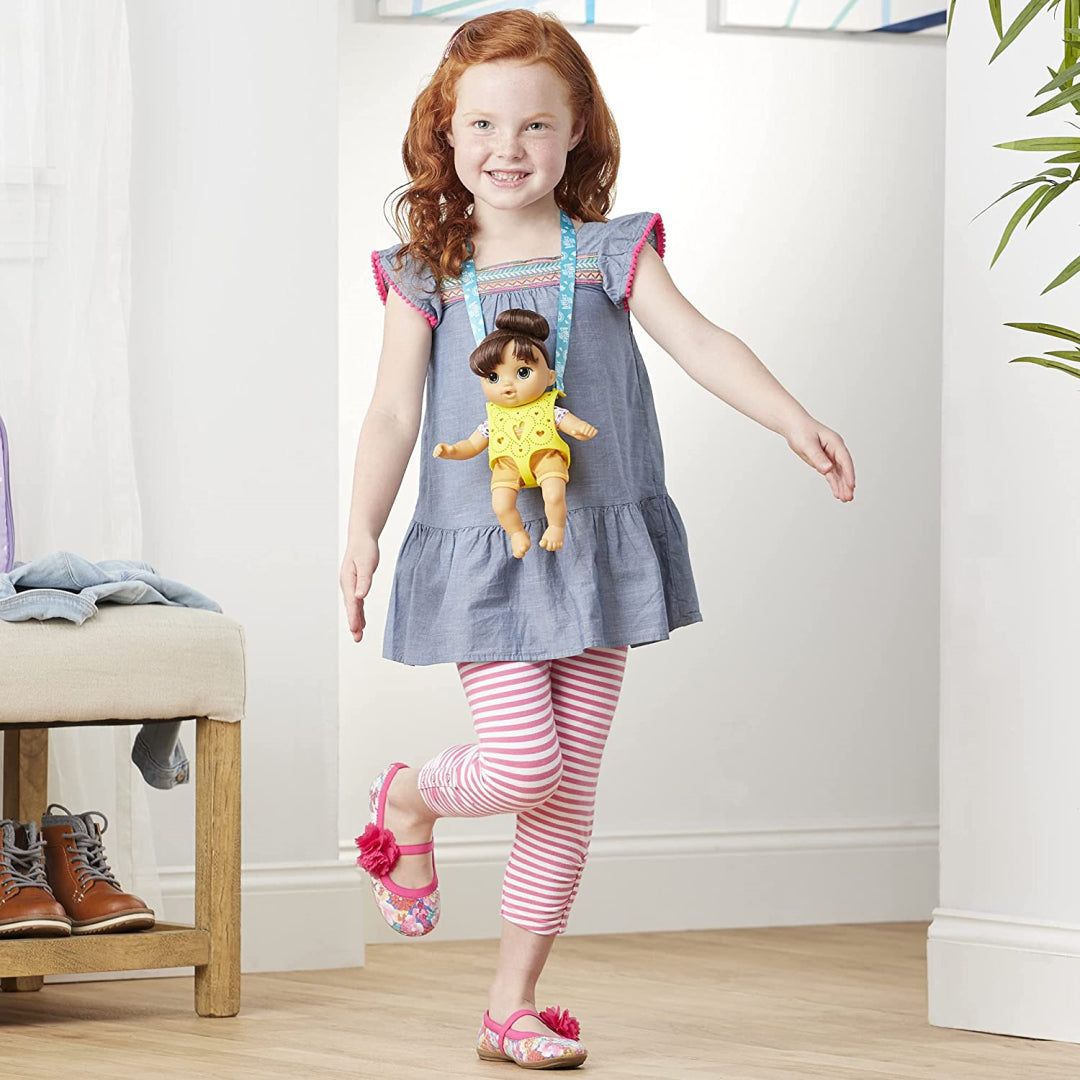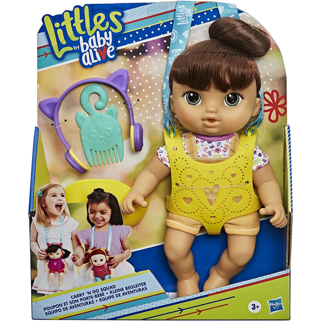 Included in the package is a doll carrier, pretend headphones, and a comb for styling Little Nadia's gorgeous brown hair. These doll accessories are designed for fun on the move and come with the doll. Look for all of the Littles by Baby Alive dolls, accessories, and doll clothes so that you and the rest of the gang may go on playdate adventures together (each sold separately, subject to availability).