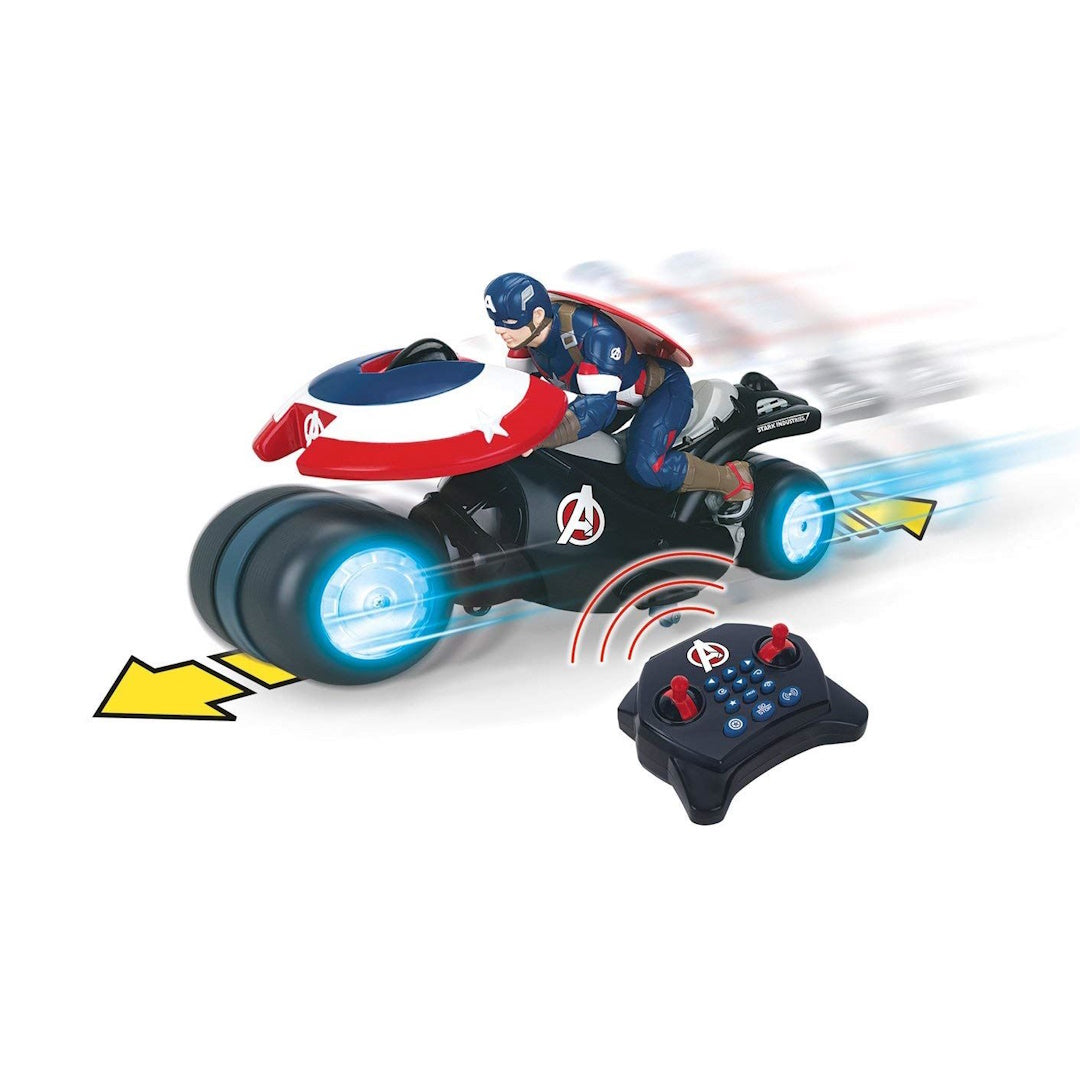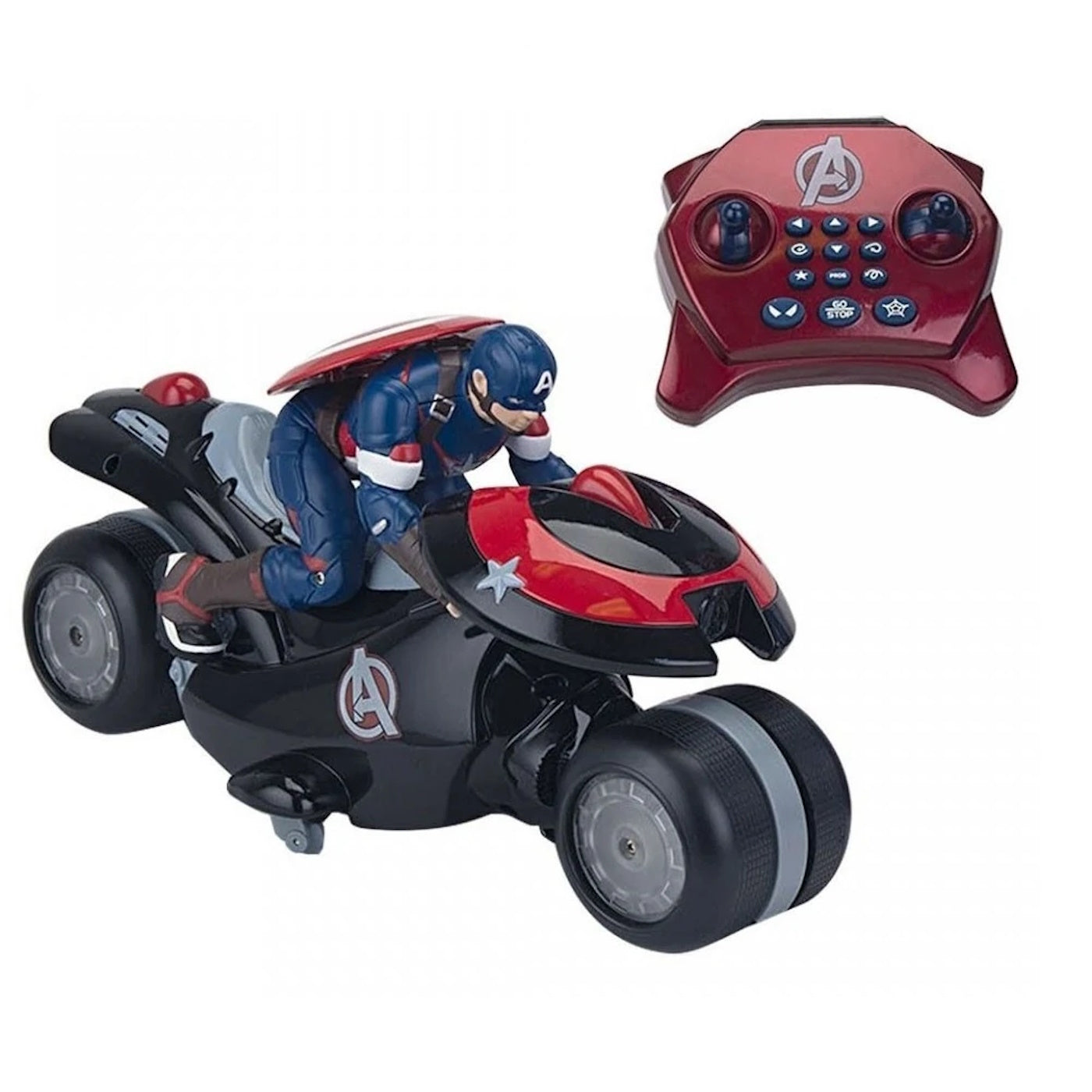The Captain America Motorcycle boasts vibrant light-up wheels that shift from blue to red for an eye-catching effect. Its user-friendly infrared remote control lets you execute instant commands or pre-program action sequences. With intuitive joysticks and buttons, you can effortlessly steer in any direction, forward, reverse, left or right.