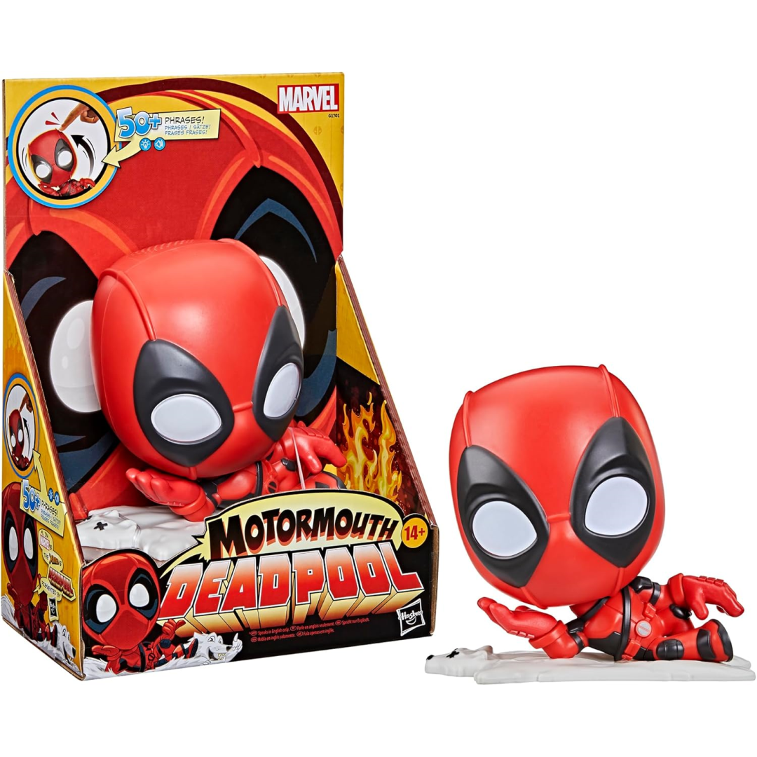 Get ready for nonstop laughs and cheeky banter with the Marvel Motormouth Deadpool Figure. This brilliantly bonkers talking figure brings the Merc with a Mouth to life with over 50 hilarious phrases in English that'll have the whole family giggling. Simply push Deadpool's head and watch his eyes light up as he delivers his signature snark and humour. Want even more chaos? Rapidly push his head to unlock bonus sounds and effects including a cuckoo clock and bullhorn that are delightfully unexpected.