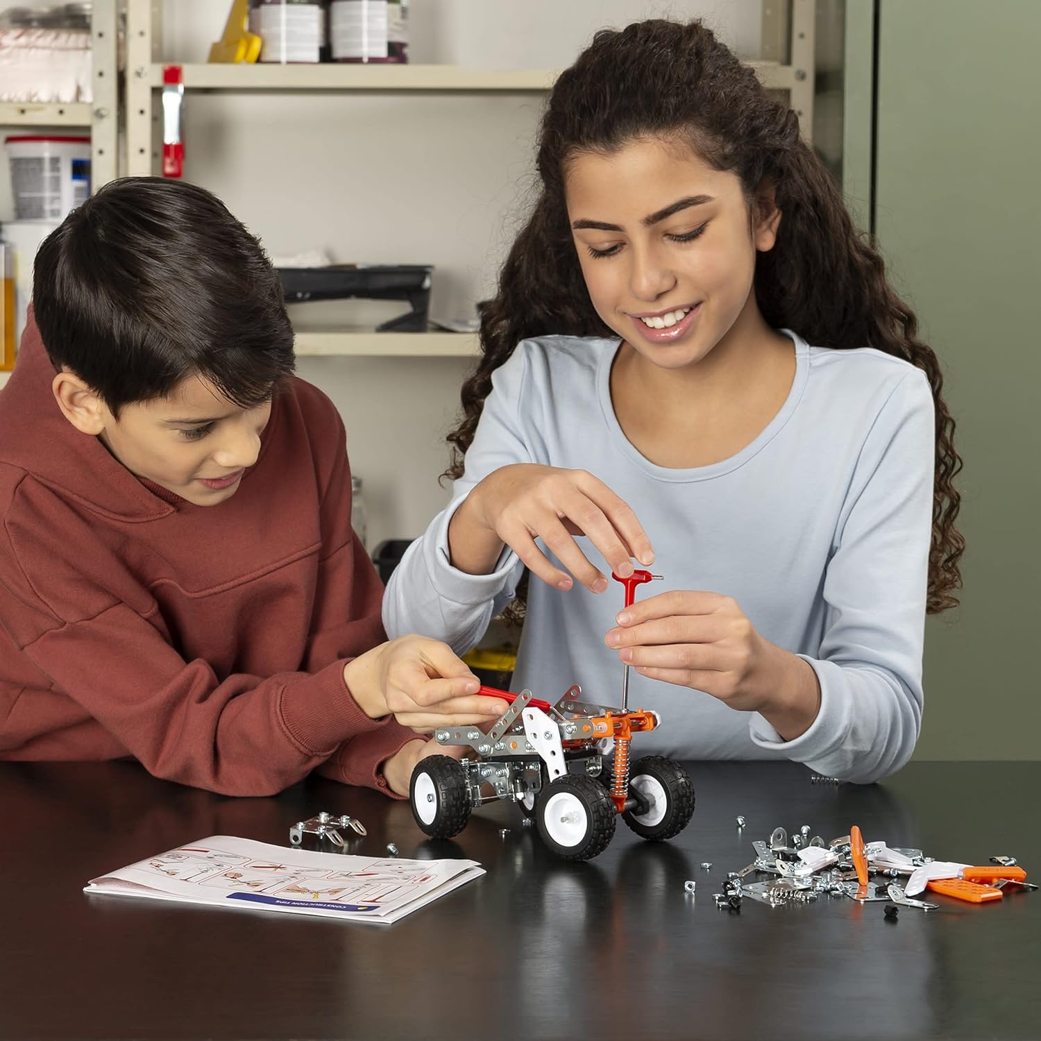 With this construction kit, children can discover how science, technology, engineering, art, and math ideas are utilised in real-world situations as they put together models. Using their creativity, children will improve their hand-eye coordination, fine motor skills, and problem-solving abilities.