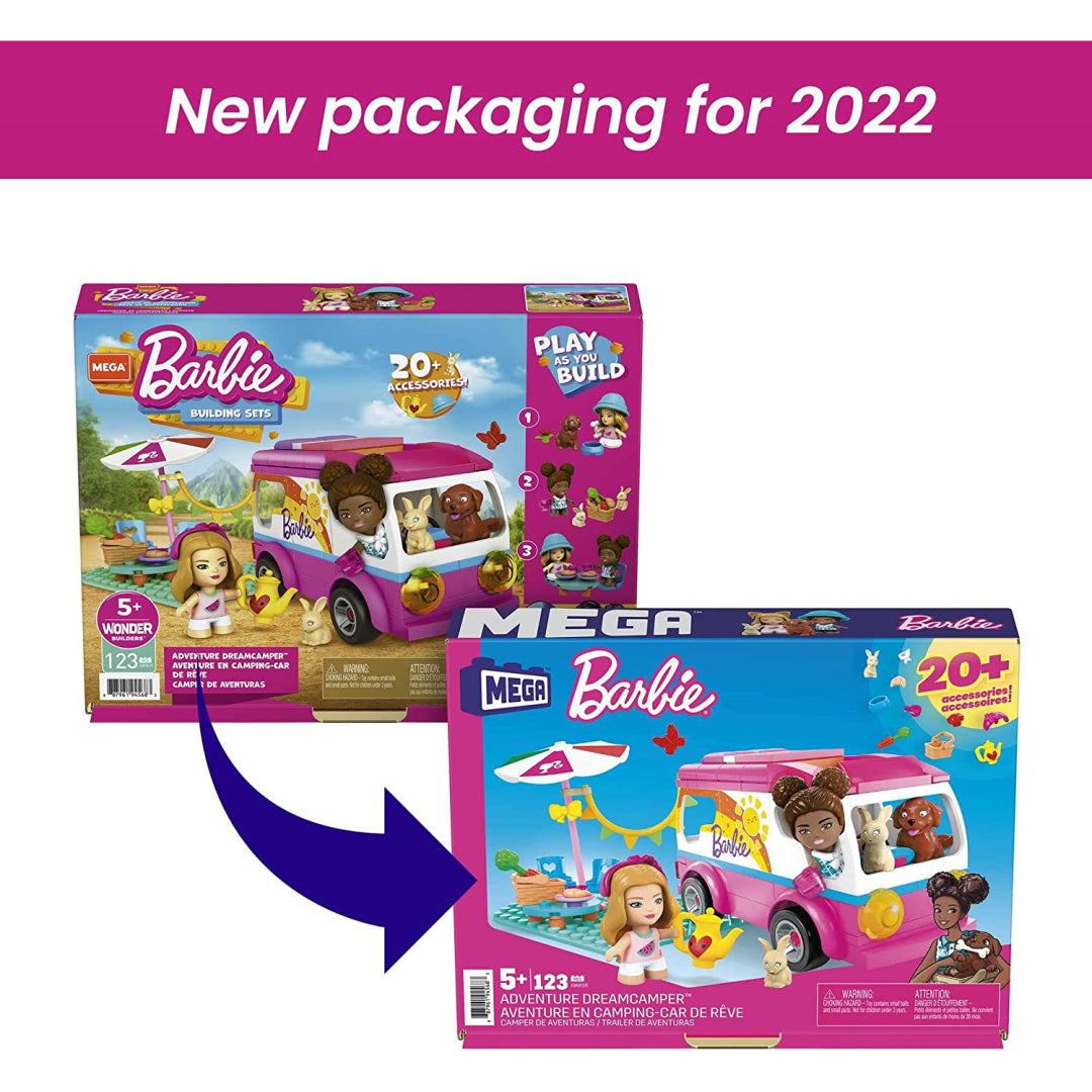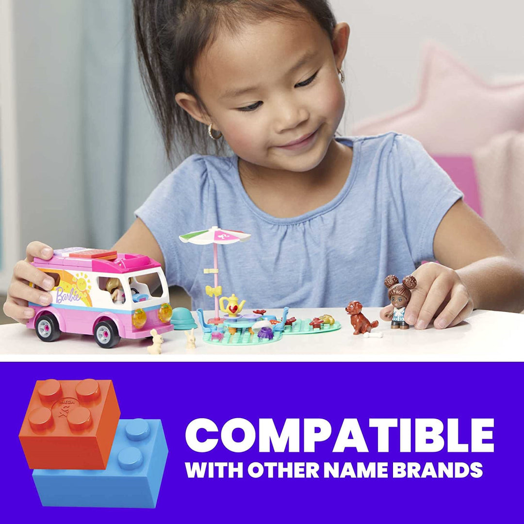 Unleash your little one's creative spirit with this fantastic Mega Barbie Adventure Dream Camper building set. Perfect for budget-conscious parents looking for toys that combine play value with learning, this 123-piece set delivers hours of entertainment and skill-building fun. Your children will love constructing their very own pink dream camper, complete with removable top that cleverly transforms into an outdoor sleeping area for two included Barbie micro-dolls.