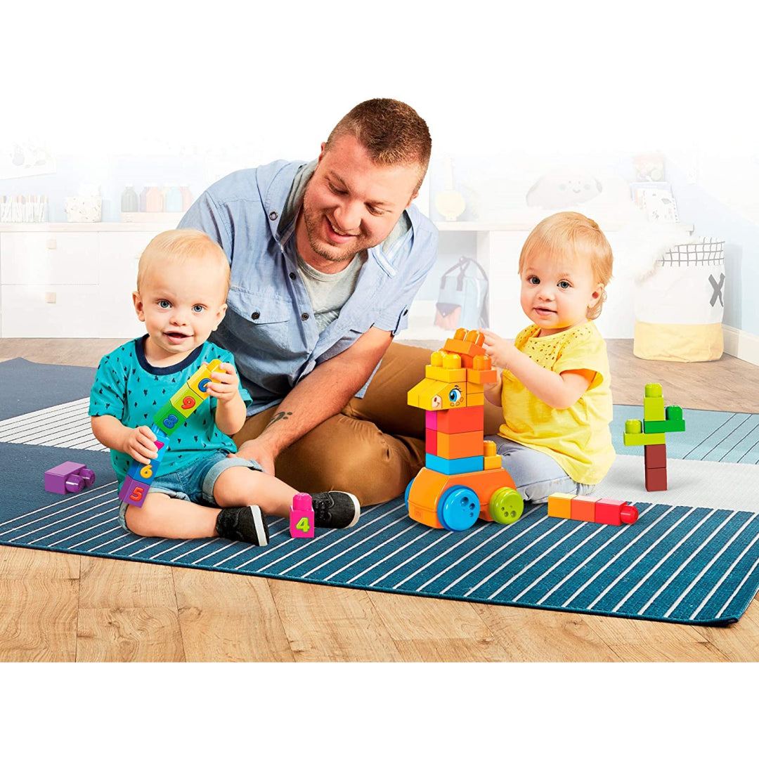 Building this gorgeous rolling giraffe for your baby to play with while learning to count is a fun and exciting activity when they use blocks adorned with numbers 0 through 9. When kids stack the large, easy-to-grasp blocks, it will help them develop their fine motor skills. In addition to this, students will pick up the skill of counting as they arrange the numbers sequentially atop the moving wheelbase. When you add more and more numbers, your giraffe will become taller and taller! Then you can see it bounce up and down as it moves when it's being rolled along on its large chunky wheels!