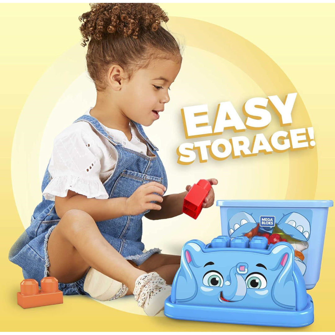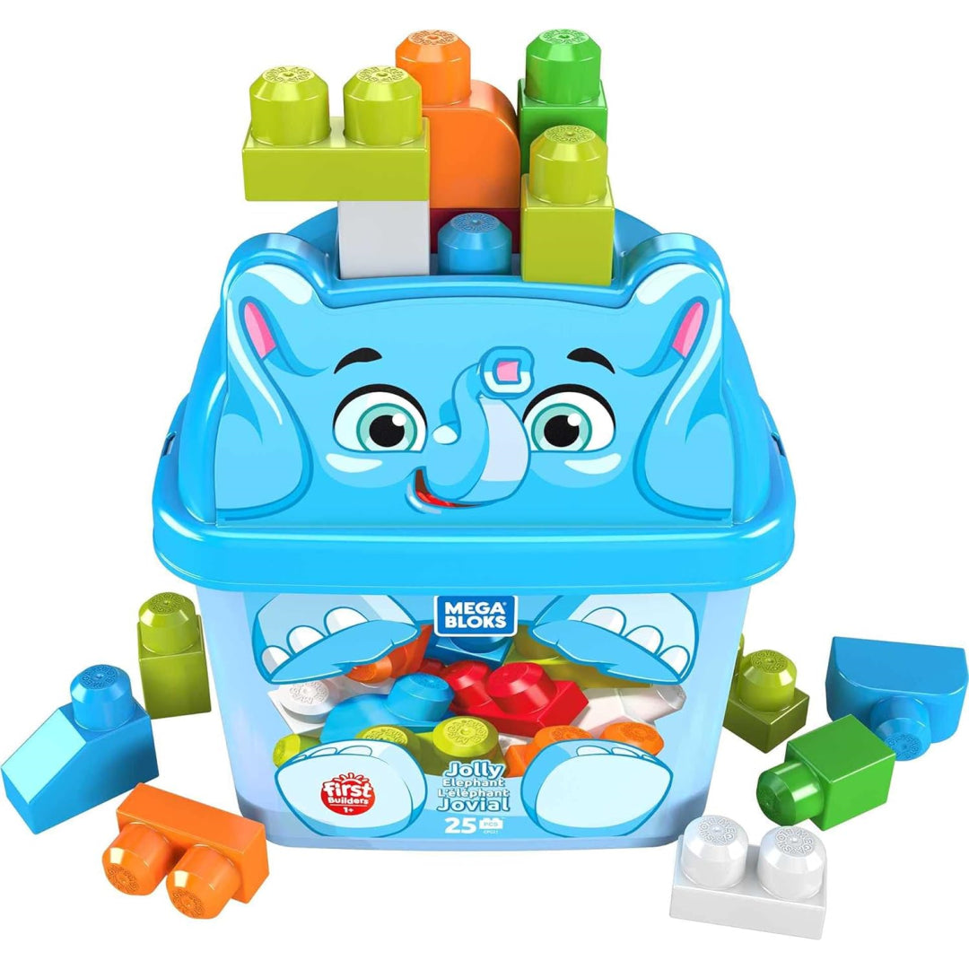 Get ready for big building adventures with the Mega Bloks First Builders Jolly Elephant set! Perfect for busy parents looking to combine playtime with learning, this 25-piece block set comes in a cute elephant-shaped bucket that makes tidying up a breeze. The chunky blocks are specially designed for little hands, making them ideal for your toddler's first building experience.
