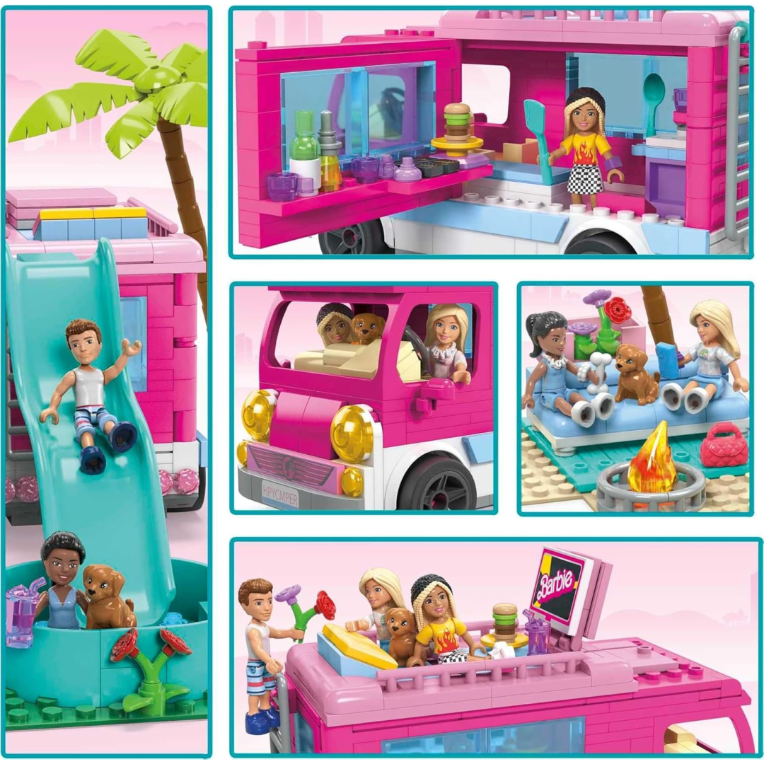 Let's get building with this amazing Mega Construx Barbie Dream Camper set! Perfect for creative play and family building time, this 580-piece set brings Barbie's world to life in brilliant buildable detail. Your little ones will adore creating their own camping adventures with four micro-dolls, an adorable pet dog, and a fully equipped camper van that's packed with fun features.