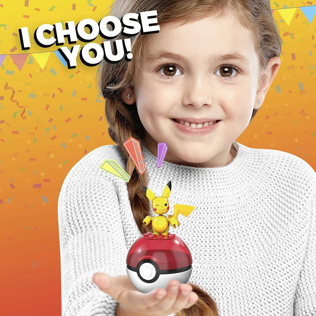 This buildable Pikachu figure building kit will have you tearing through the competition as quick as lightning. Construct your very own Pikachu and put it in a fighting posture on the Poké Ball so that it may surprise your foes with strong Electric-type strikes. When you've completed all 6 of the series' builds, you'll unlock even more Pokémon figurines (sold seperatly) Perfect for Wonder Builders that are at least 6 years old.
