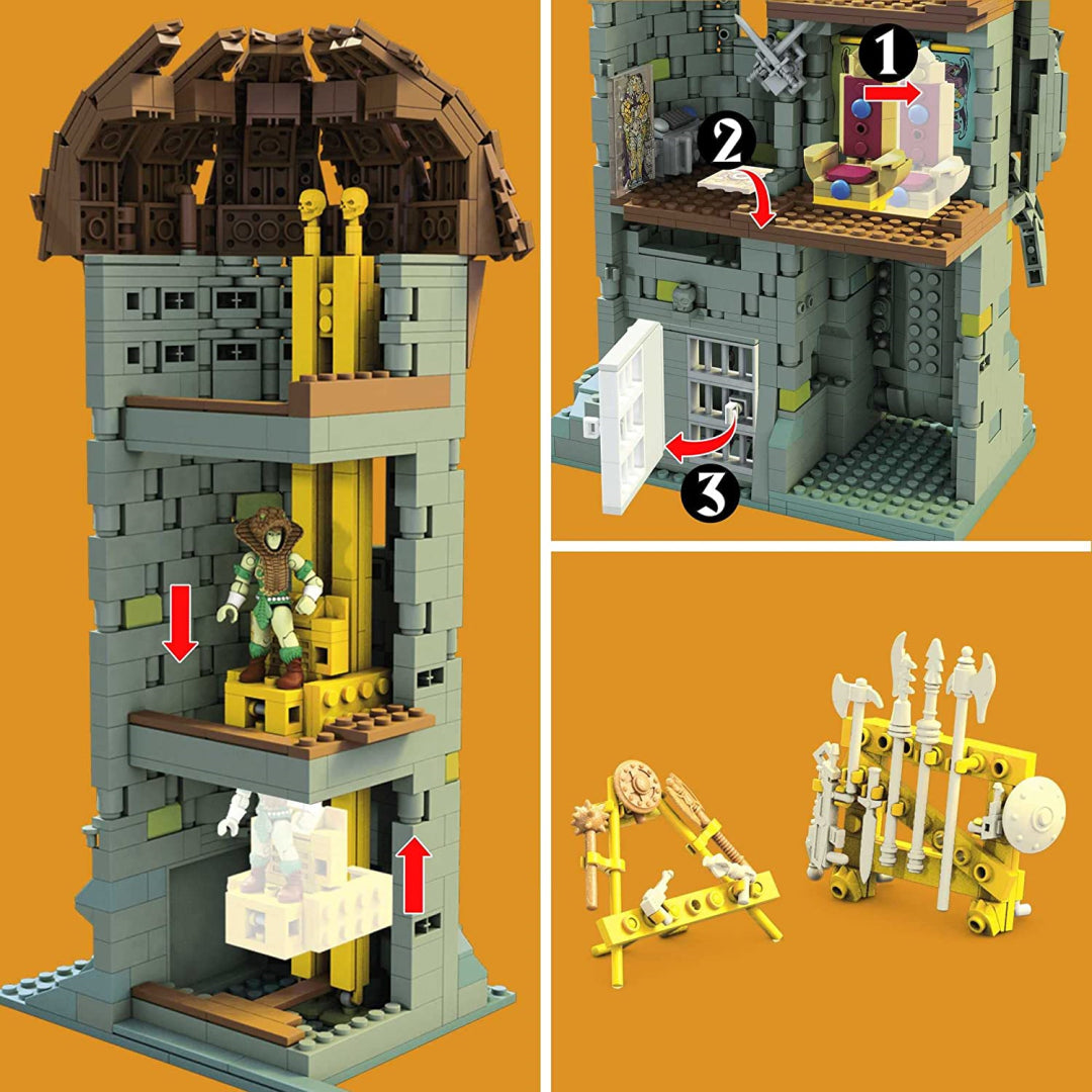 Open and close this detailed castle like a book to reveal three floors of adventure across six distinct areas. Your little heroes will love operating the working Jawbridge, elevator and turrets. The throne room holds a secret passage, and the Power Sword unlocks the drawbridge - just like in the classic series!