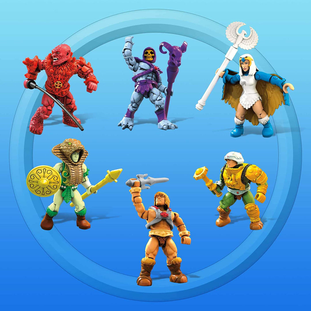 The set includes six highly poseable micro action figures: He-Man, Skeletor, Man-at-Arms, Beast Man, the Goddess, and an exclusive Sorceress. Each comes with their own unique accessories and decorations. Display them proudly with the included weapons rack and mysterious Orb of Grayskull.