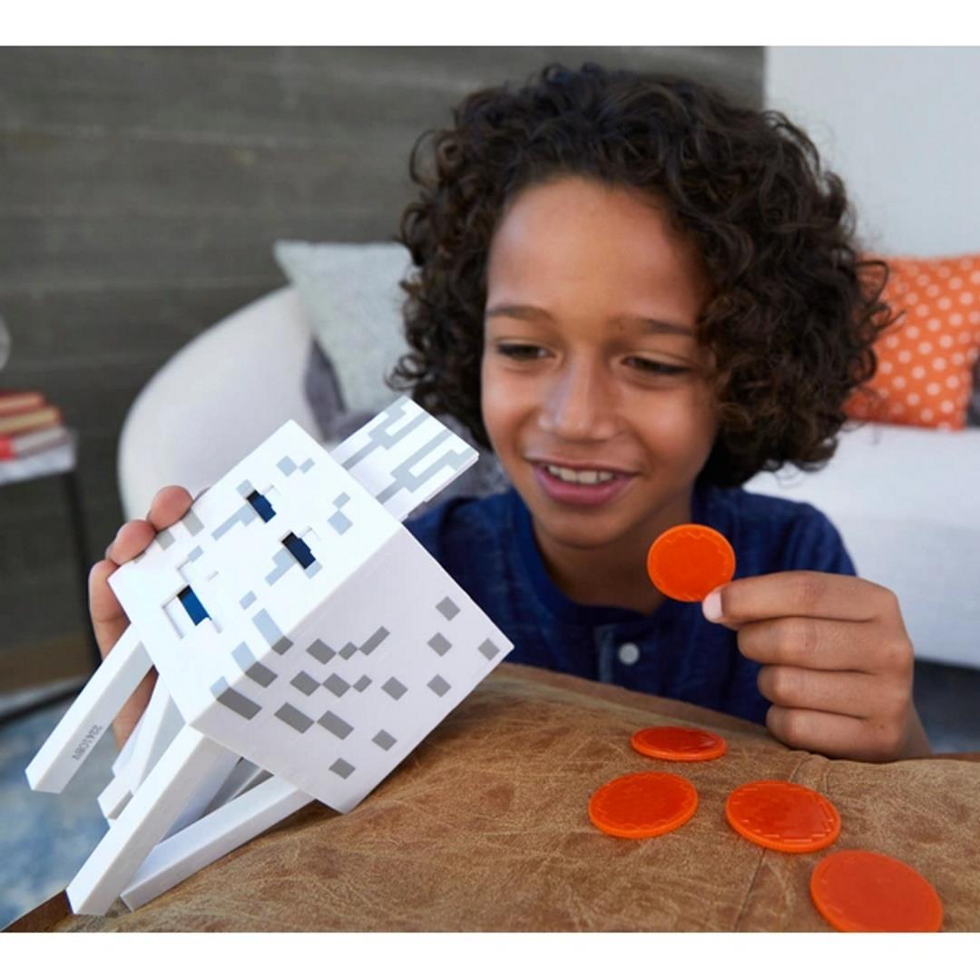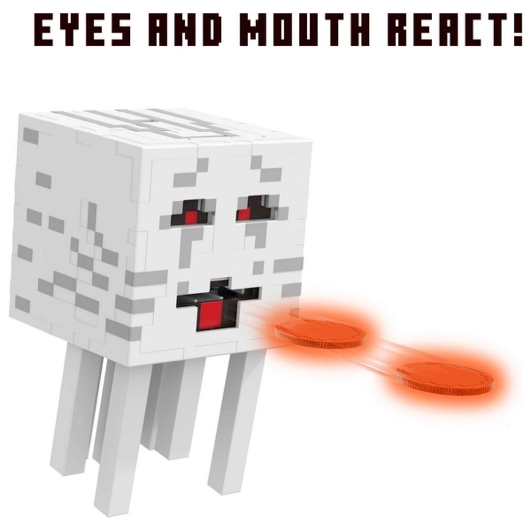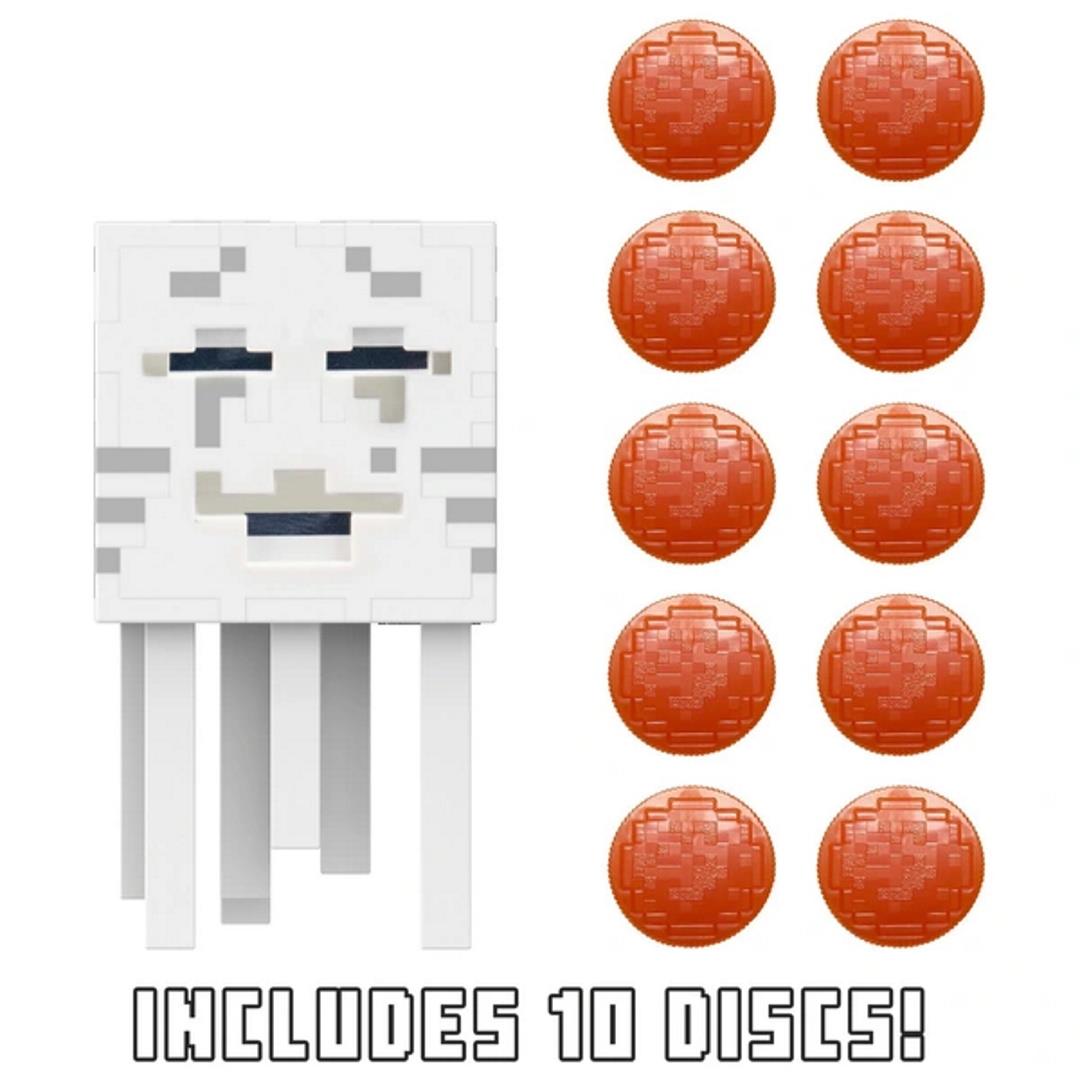 Prepare to fire! Use your hand to hoist and hover the Ghast, a realistic re-creation of the eerie and ghost-like aggressive Minecraft mob that's an all-time child favourite, by loading the 10 red 'fireball' discs. Players locate their victim, hit the button, and ZAP, the frightening Ghast's eyes change expression as it fires a fiery disc from its mouth! Legs dangle as Minecraft enthusiasts clutch the figurine and 'fly' through the Nether to safety.