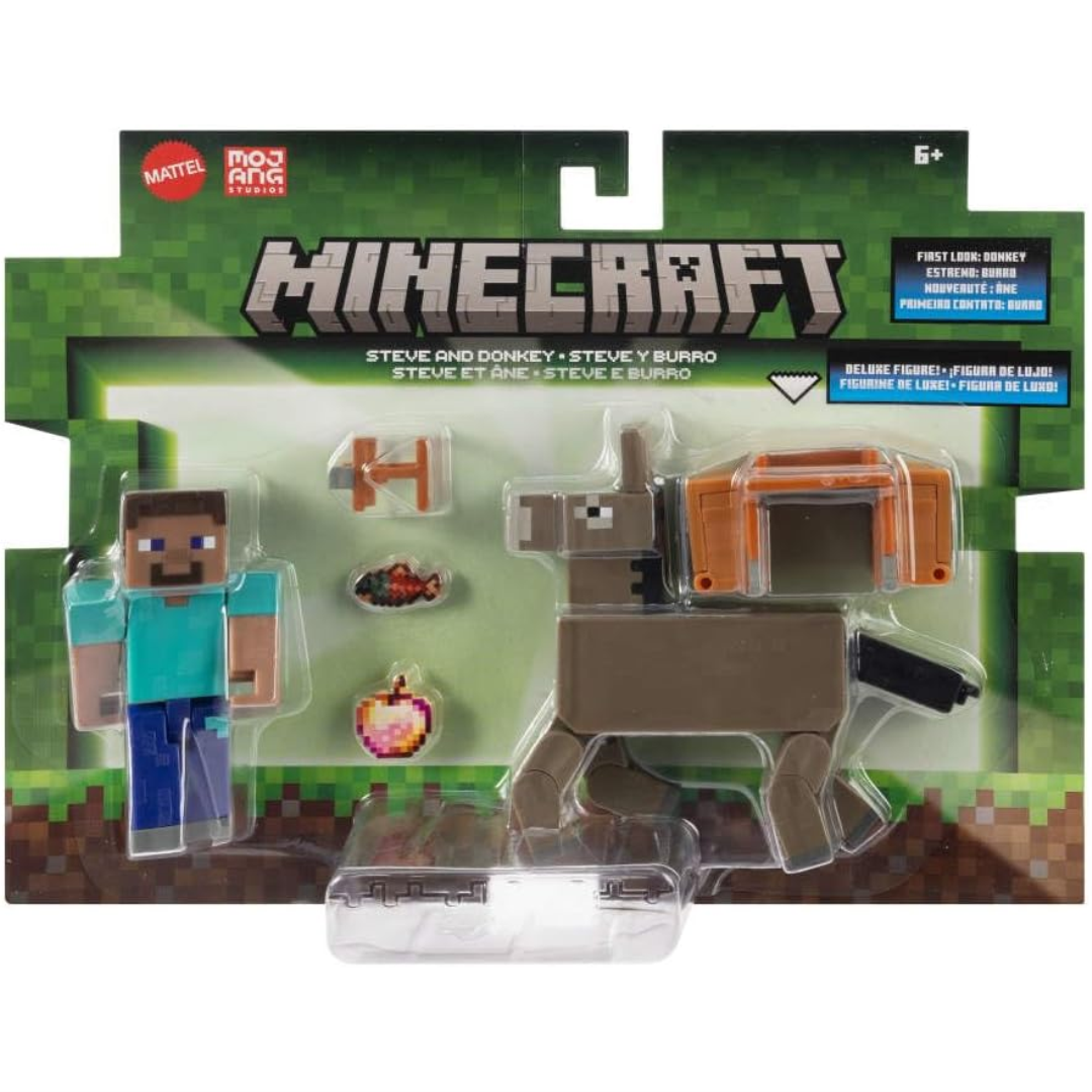 Perfect for display shelves, imaginative play, or adding to your growing collection, this Minecraft Steve and Donkey Figure Pack brings two fan-favourites together in one brilliant set. At 3.25 inches tall, these compact figures capture the authentic pixelated design that makes Minecraft instantly recognisable, complete with movable joints for posing during adventures or creating eye-catching displays.